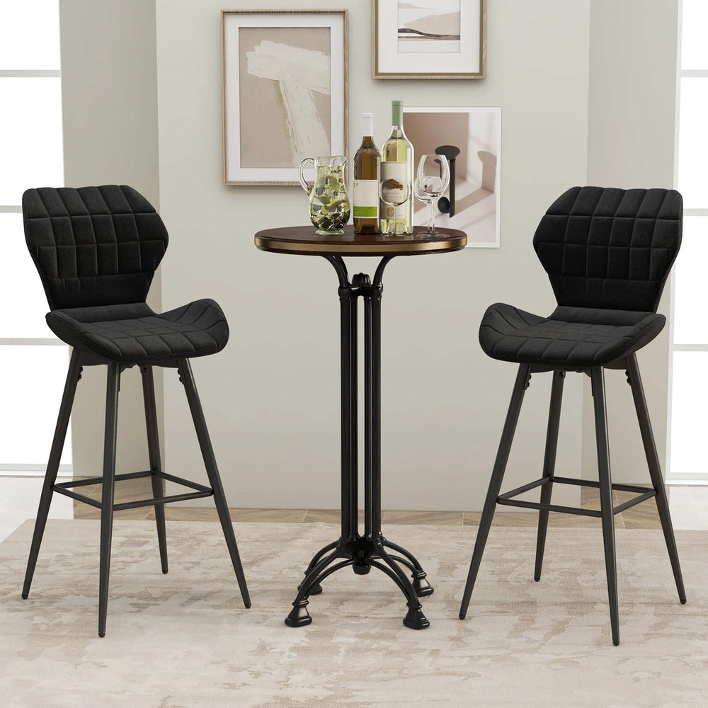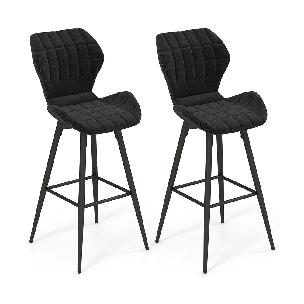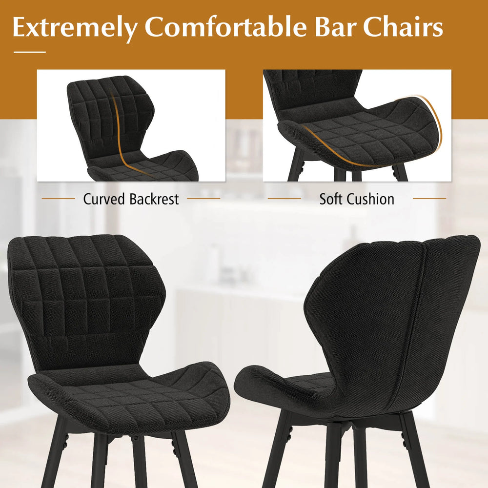 Set of 2 bar stools with backrest & footrest Padded bar chairs Modern dining chair