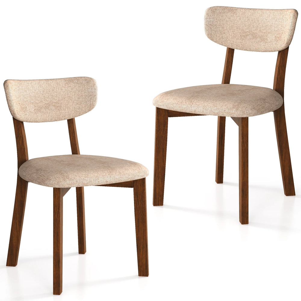 Dining Chairs Set of 2 Upholstered Mid-Back Chairs with Solid Rubber Wood Frame-Beige