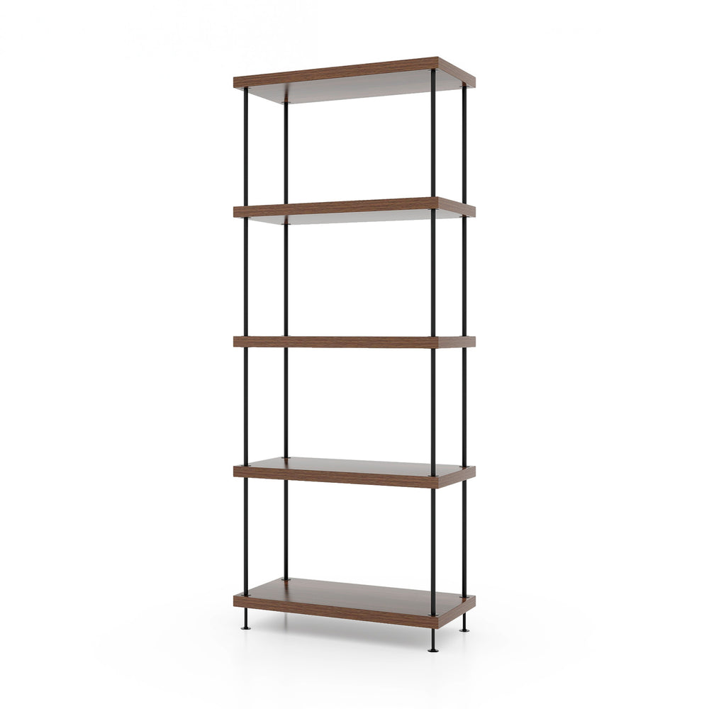 Color: Walnut Material: MDF, Metal 2-tier: Overall Dimensions: 23.5" x 11.5" x 18" Space Between Shelves: 12" Bottom Shelf above Ground: 3" Net Weight: 12 lbs 3-tier-1: Overall Dimensions: 24" x 11.5" x 32.5" Space Between Shelves: 14" Net Weight: 18 lbs 3-tier-2: Overall Dimensions: 24" x 11.5" x 34" Space Between Shelves: 14" Bottom Shelf above Ground: 1.5" Net Weight: 18 lbs 4-tier: Overall Dimensions: 24" x 11.5" x 41.5" Space Between Shelves: 11.5" Bottom Shelf above Ground: 1.4" Net Weight: 24 lbs 5-tier: Overall Dimensions: 23.5" x 11.5" x 58" Space Between Shelves: 12" Bottom Shelf above Ground: 3" Net Weight: 28 lbs Weight Capacity of Each Shelf: 45 lbs