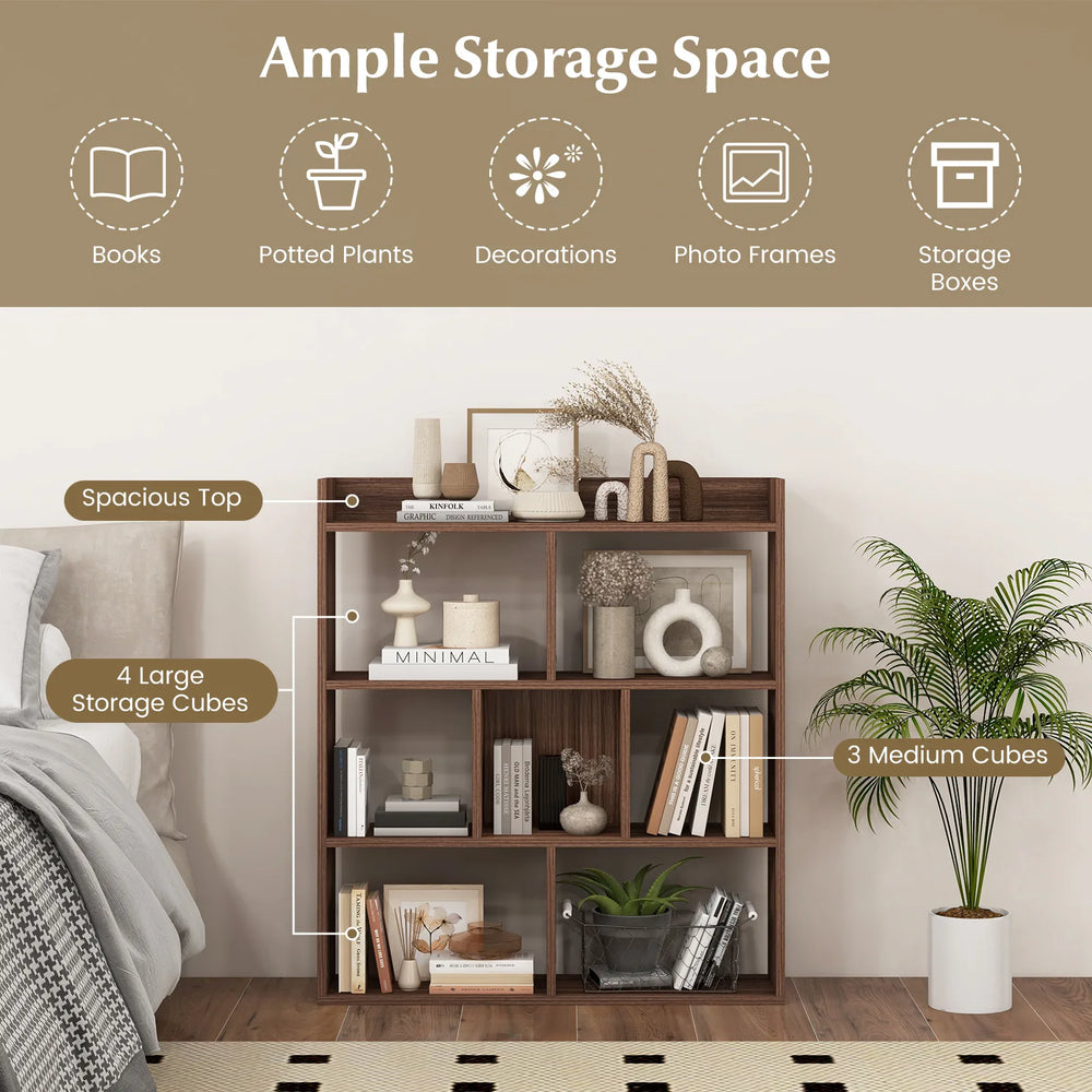 7 Cubes Open-back Bookshelf with Anti-Toppling Devices-Walnut