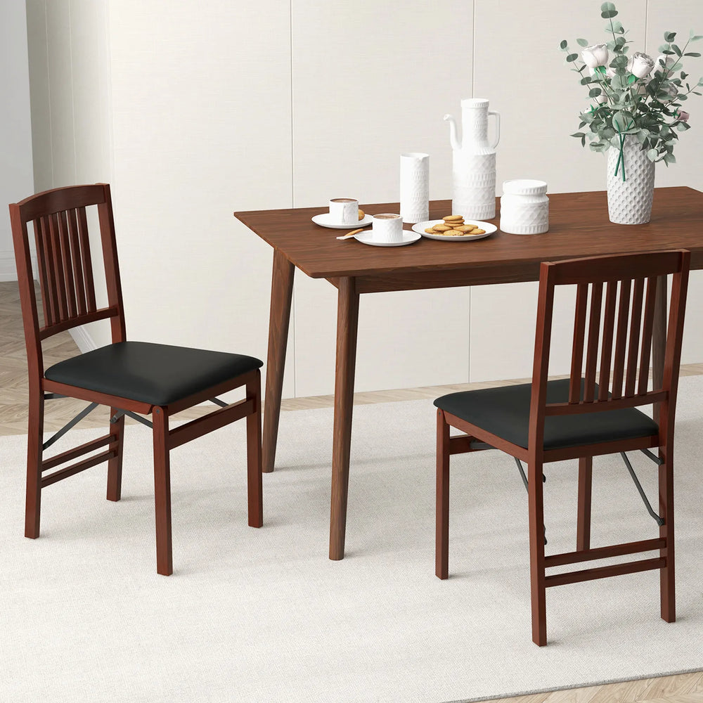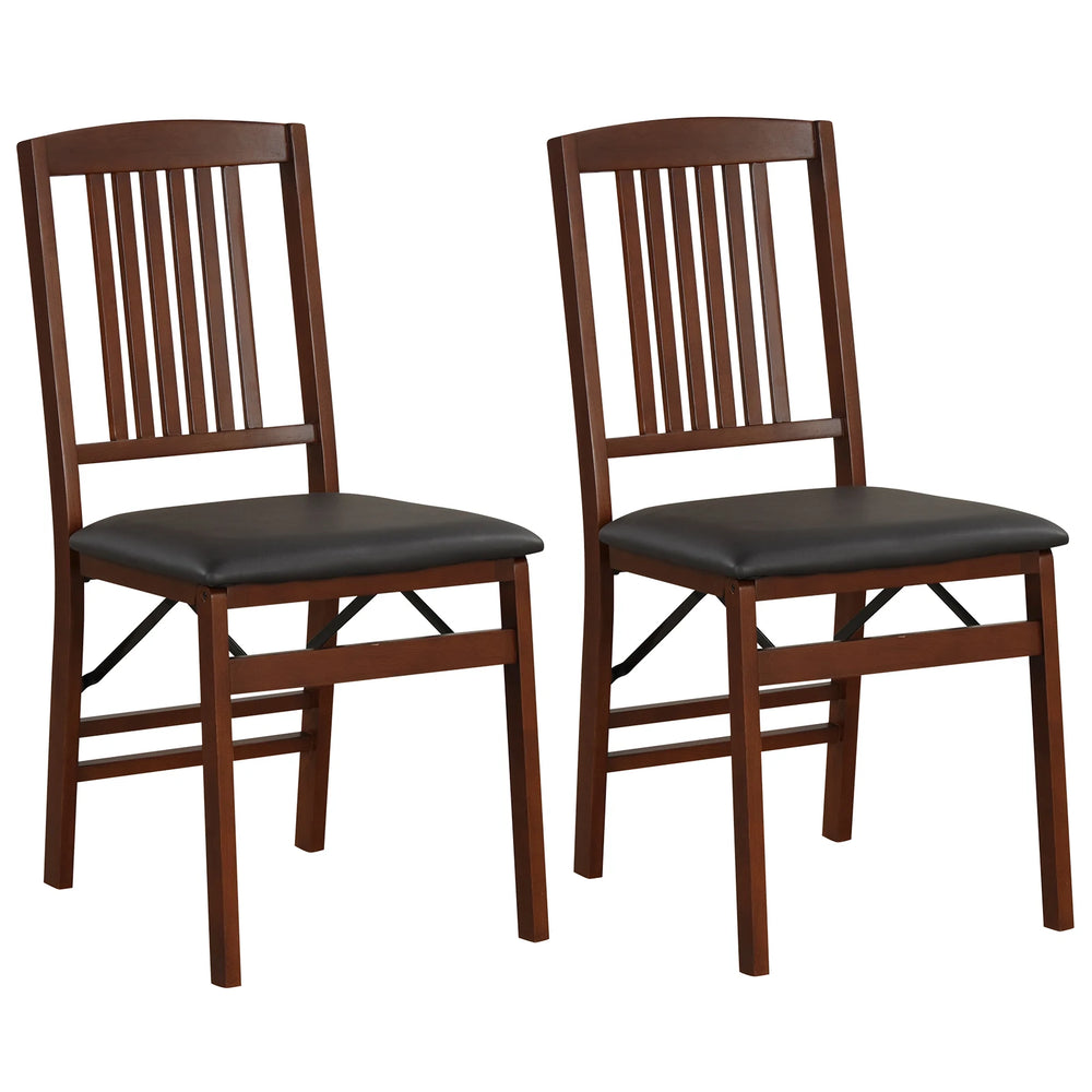 Set of 2 Foldable Upholstered Kitchen Chairs with Padded Seat-Brown