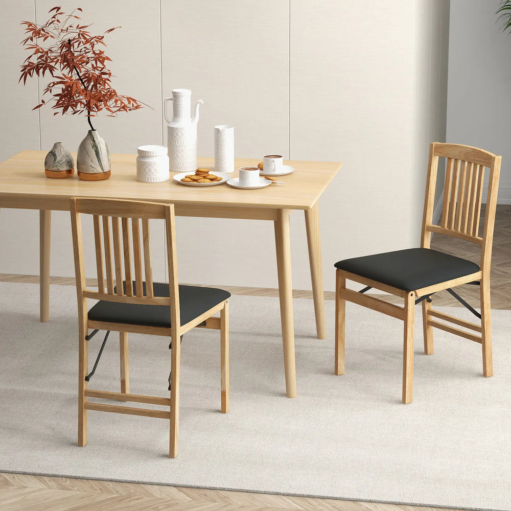 Folding Dining Chairs Set of 2 Upholstered Kitchen Chairs with Padded Seat-Black