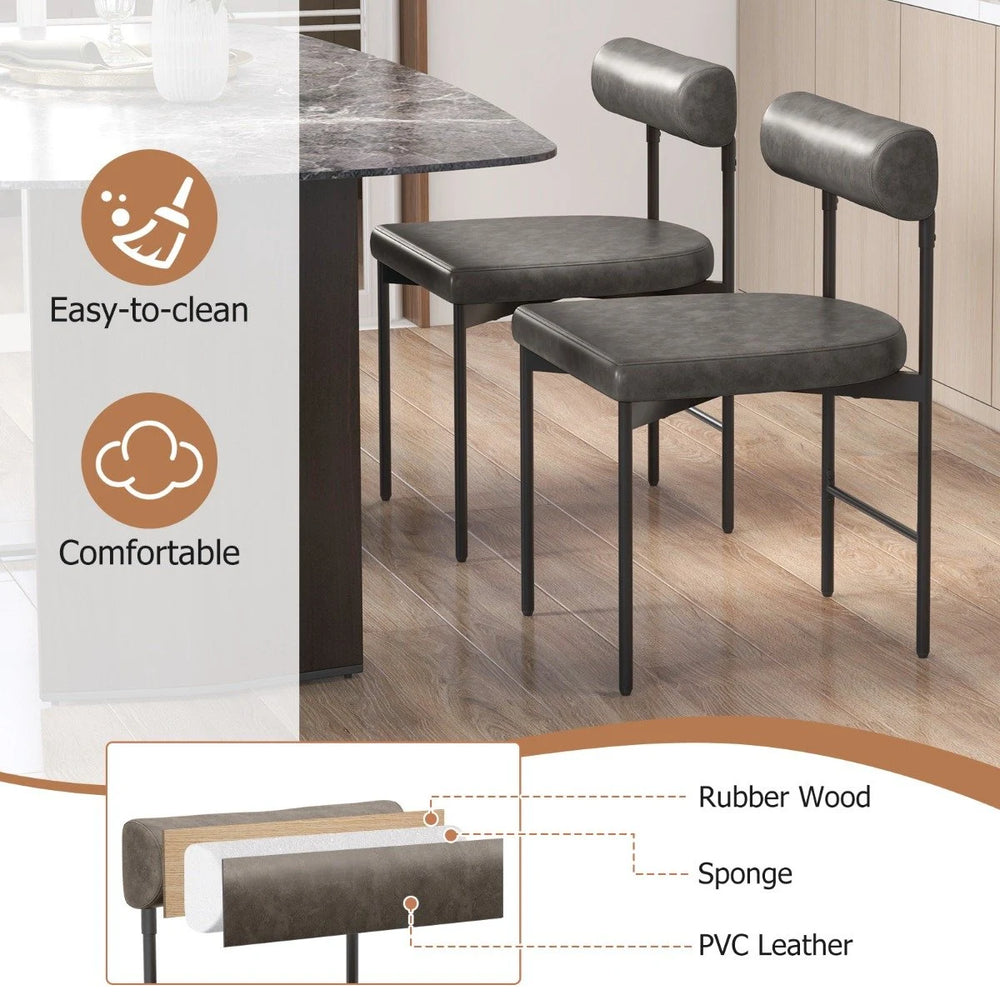 Faux Leather Upholstered Kitchen Side Chair Set of 2 with Curved and Padded Backrest-Gray