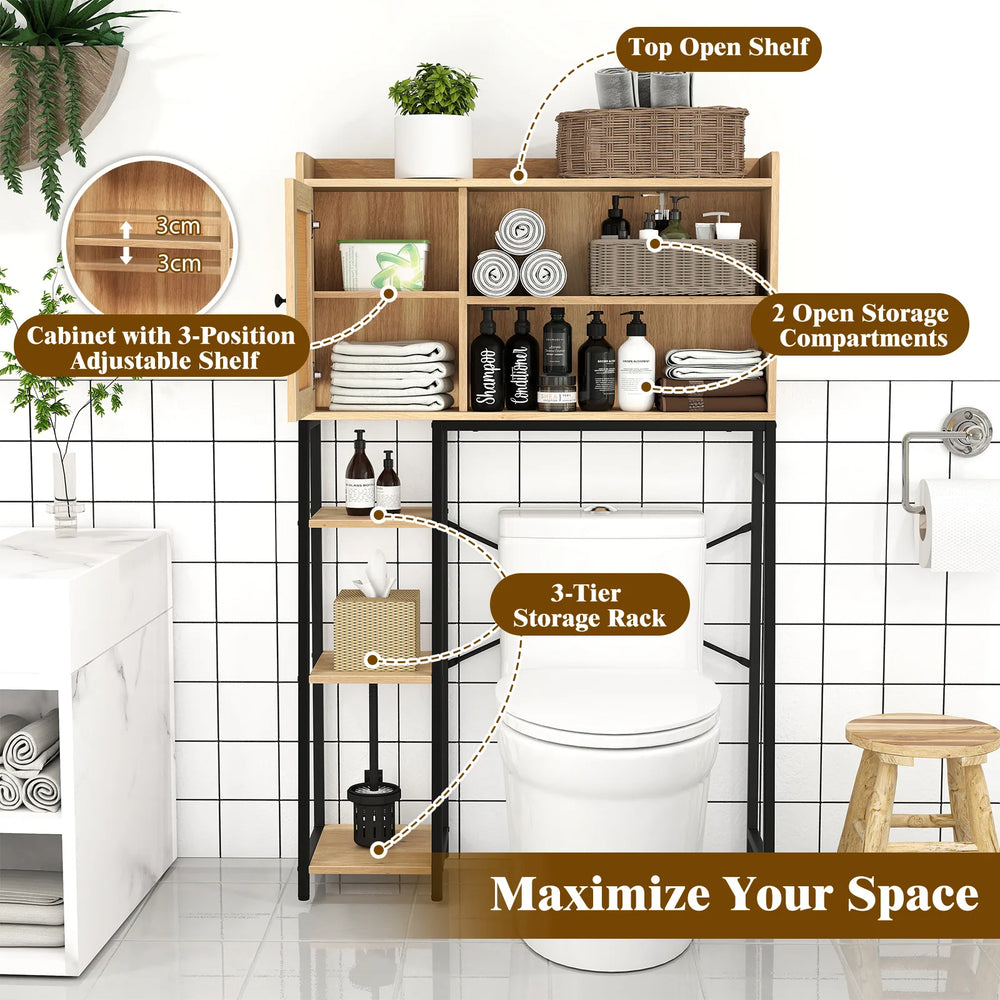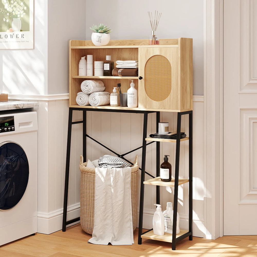Over The Toilet Storage Cabinet with PE Rattan Door and Adjustable Shelf-Natural