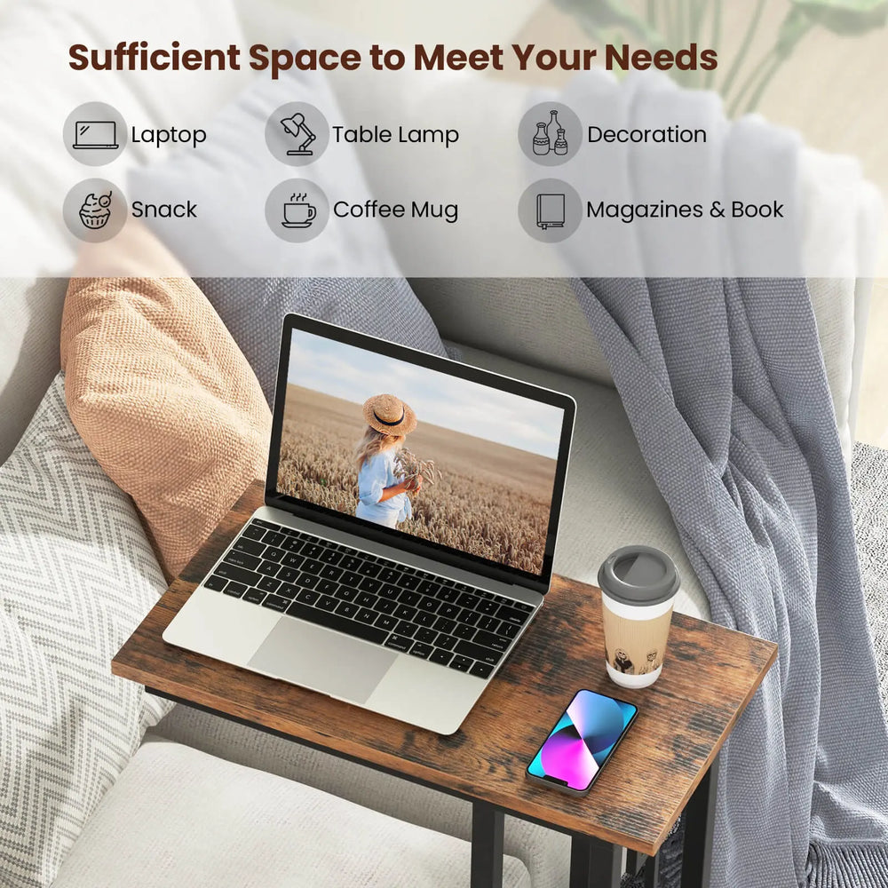 C-Shaped Side Table Compact Sofa Side Table for Small Space-Rustic Brown