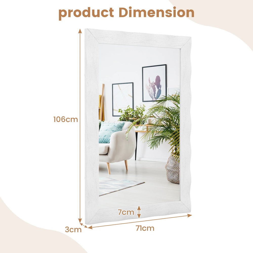 Farmhouse Wall Mirror Rubber Wood Rustic Style Wall Mirror-White