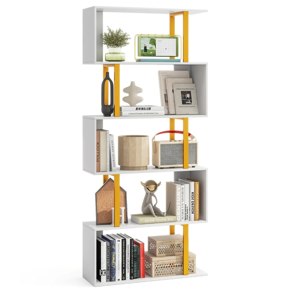 5/6-Tier Geometric Bookcase with Metal Frame and Anti-tipping Kits-5-Tier