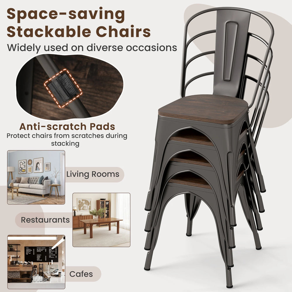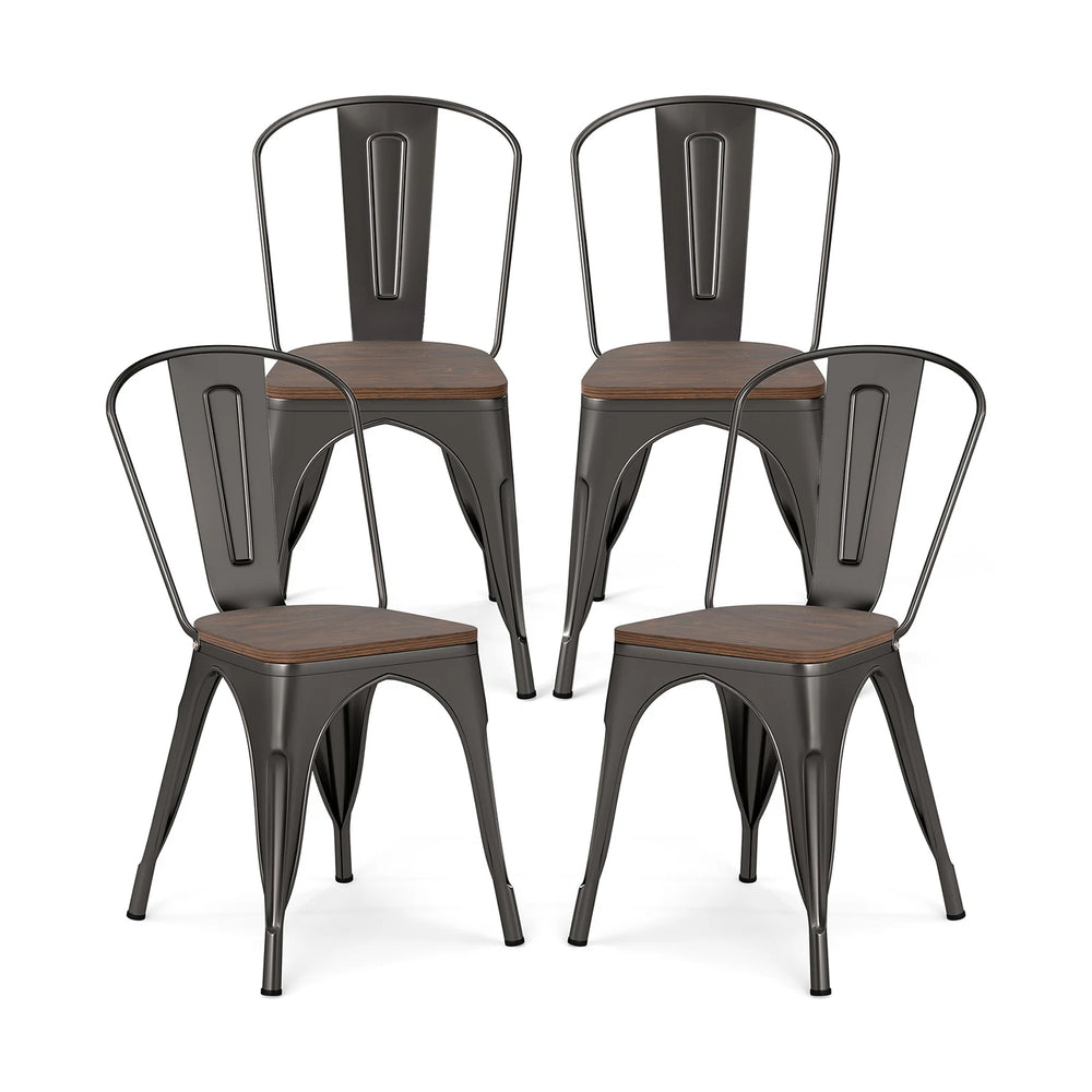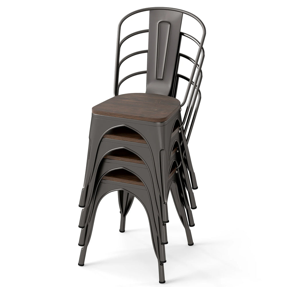 Metal Dining Chairs Set of 4 Stackable Kitchen Side Chairs-Gun