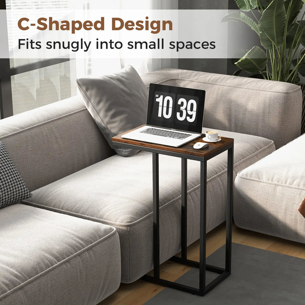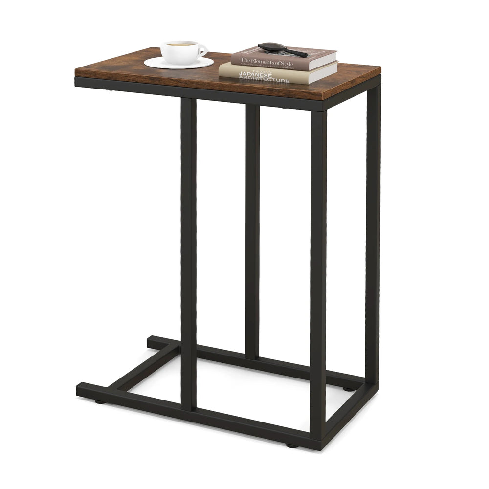 C-Shaped End Table for Couch and Bed with Metal Frame-Rustic Brown
