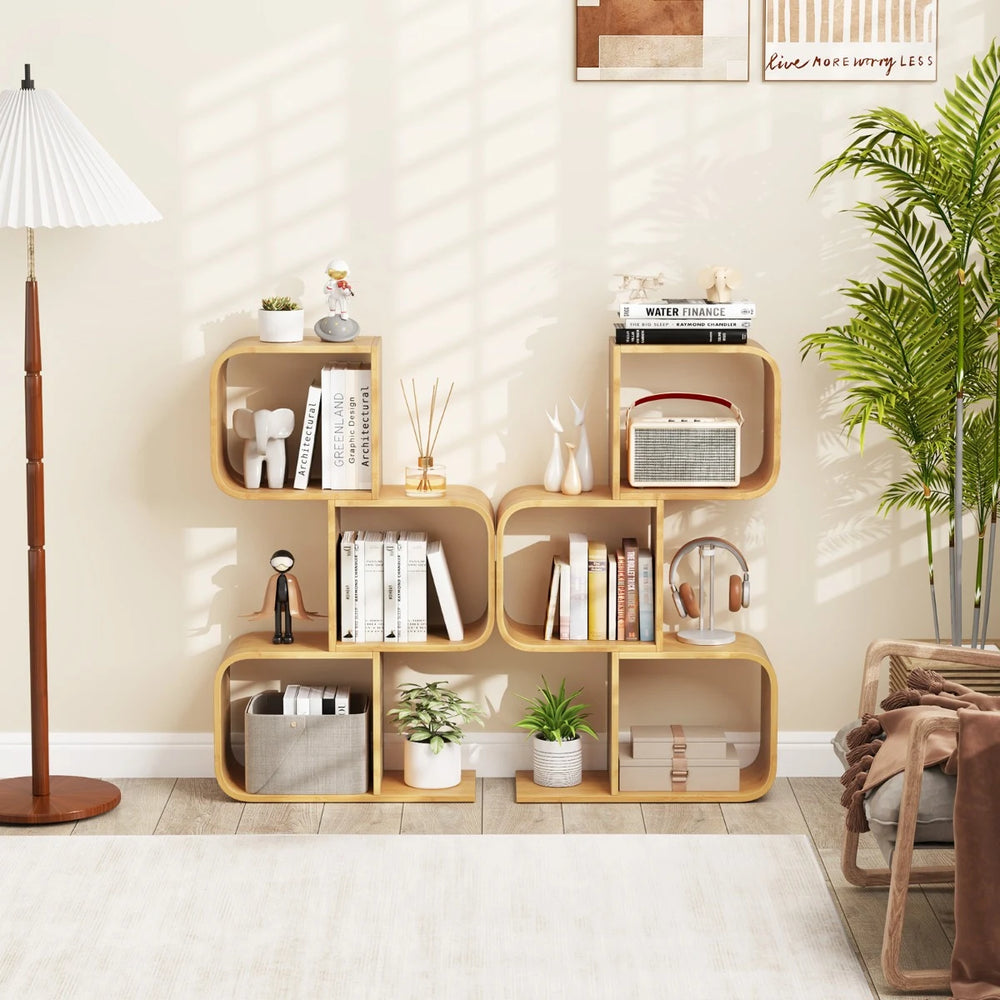 3-Tier S-Shaped Bookcase with 3 Open Cubes for Living Room-Natural