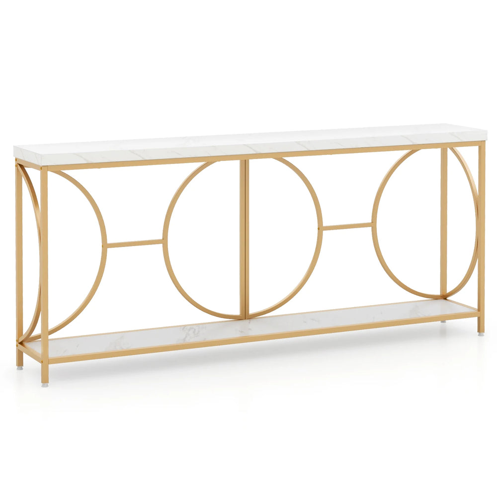 Heavy-duty 2-Tier Narrow Faux Marble Top Console Table for Entryway-White