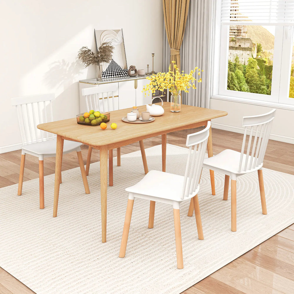 Set of 4 Windsor Dining Chairs with Spindle Backs and Curved Seats-White