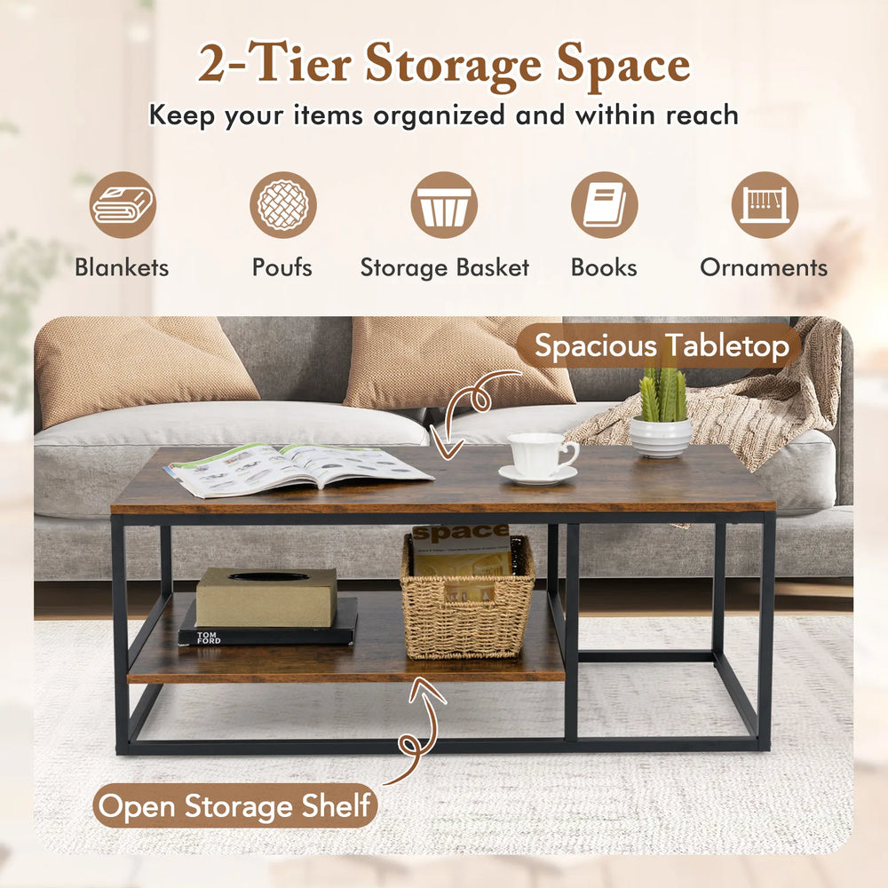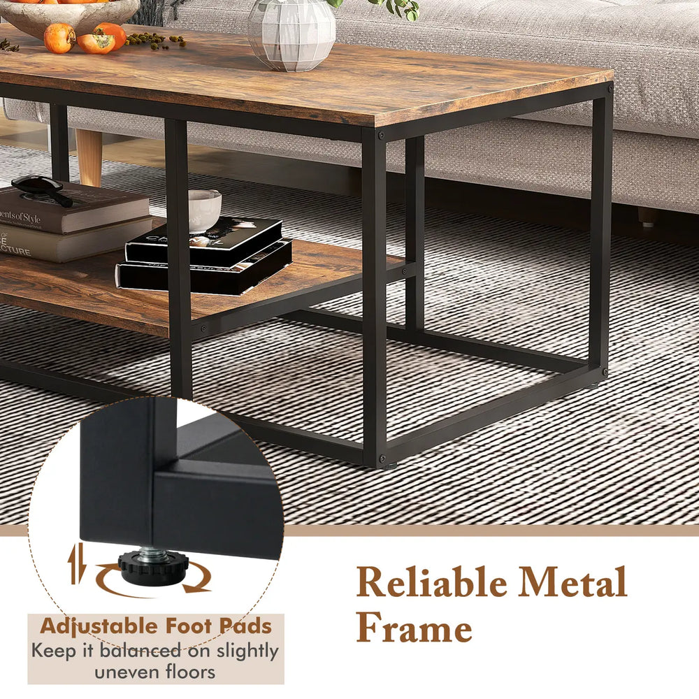 2-Tier 105 cm Industrial Wood Accent Coffee Center Table-Rustic Brown