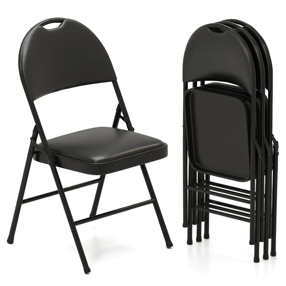 2/4 Pack Folding Chairs Padded Party Chairs with Metal Frame-Black-4 pieces