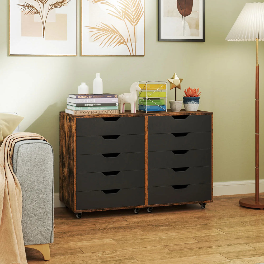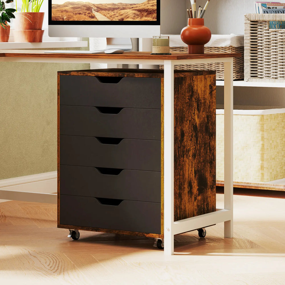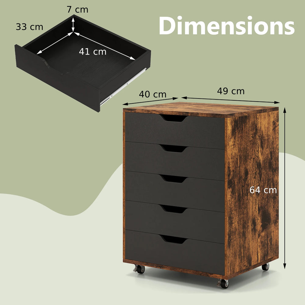 5 Drawer Chest with Lockable Wheels for Home Office-Rustic Brown
