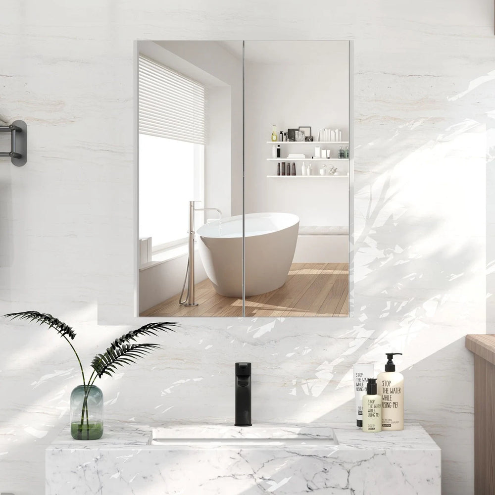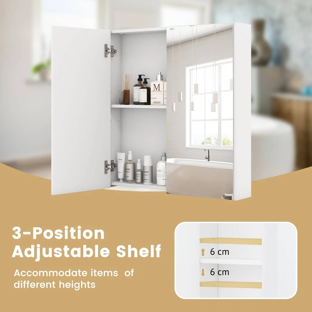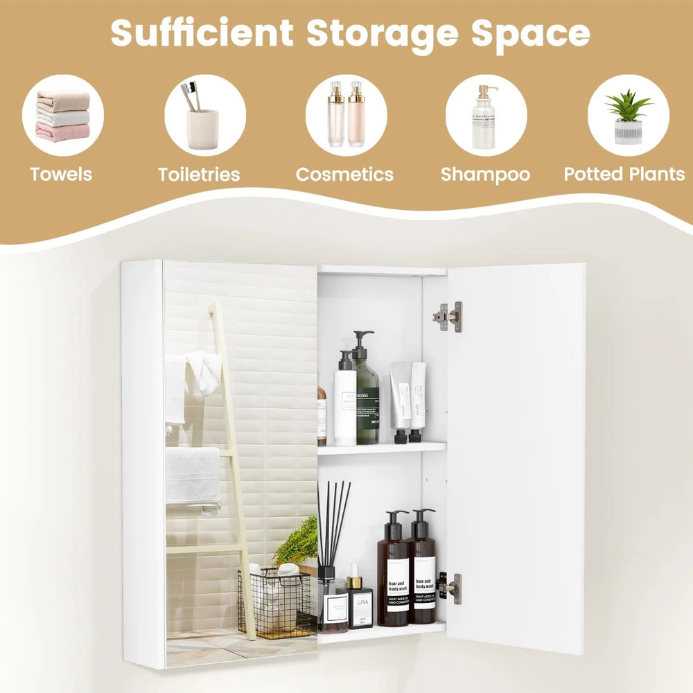 Medicine Cabinet with Mirror and Double Mirrored Doors -White