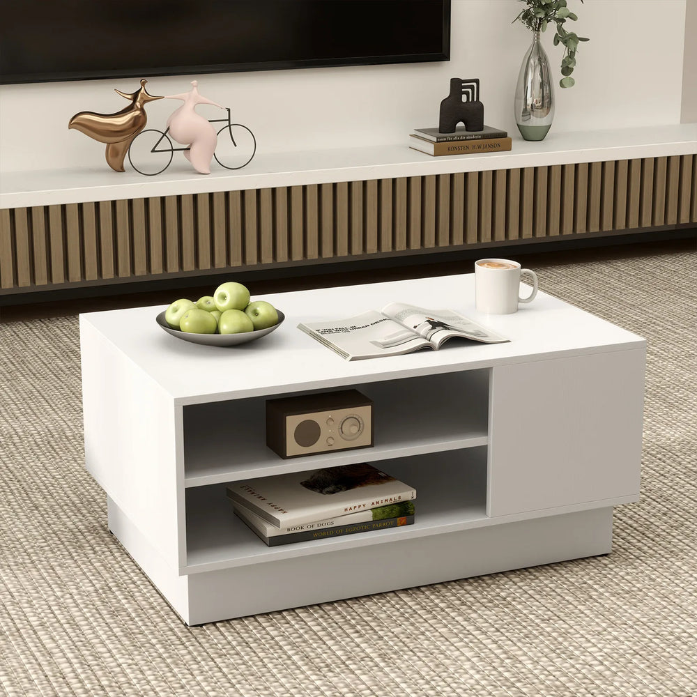 Wooden coffee table with storage space & open compartments living room table side table sofa table white is backordered and will ship as soon as it is back in stock.