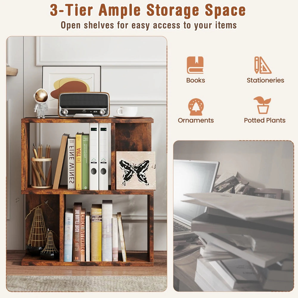 3-Tier Freestanding Bookshelf for Home Office-Rustic Brown