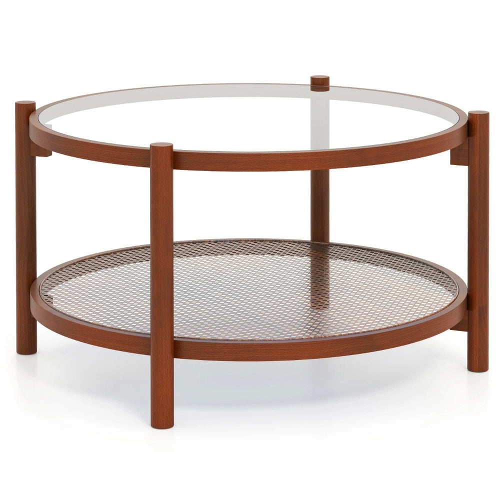78cm Round Coffee Table with Tempered Glass Top-Natural