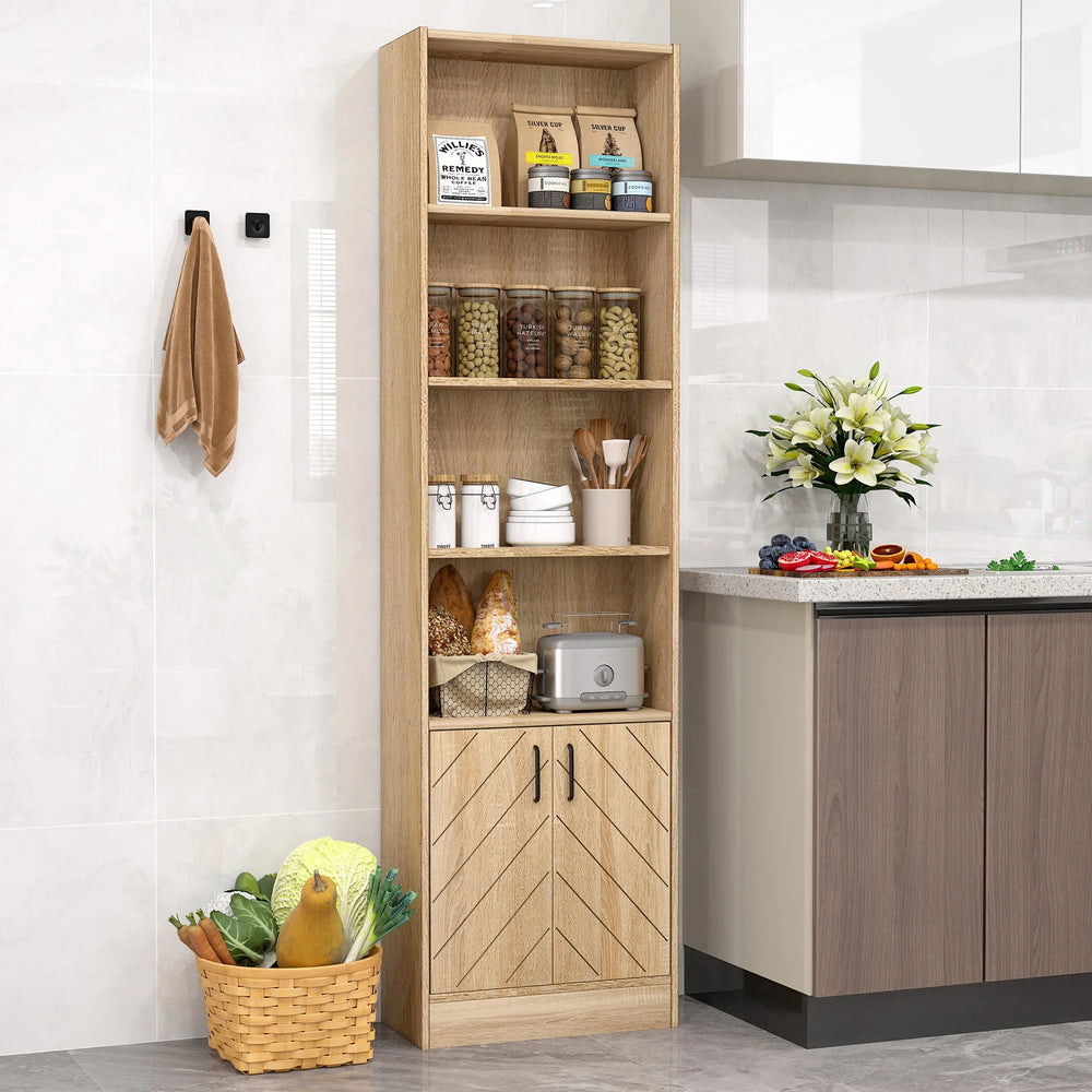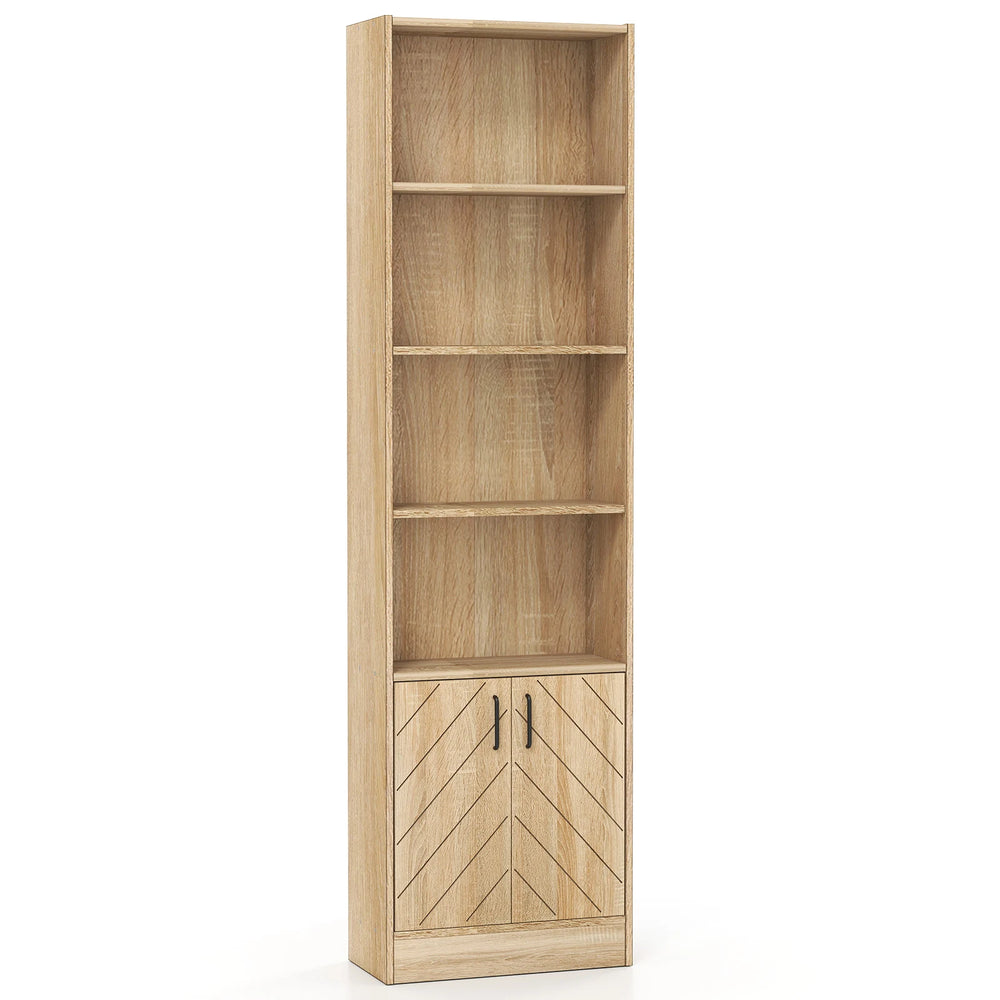 71 Inch 6-Tier Tall Bookshelf with Double Doors 4 Open Cubes-Oak