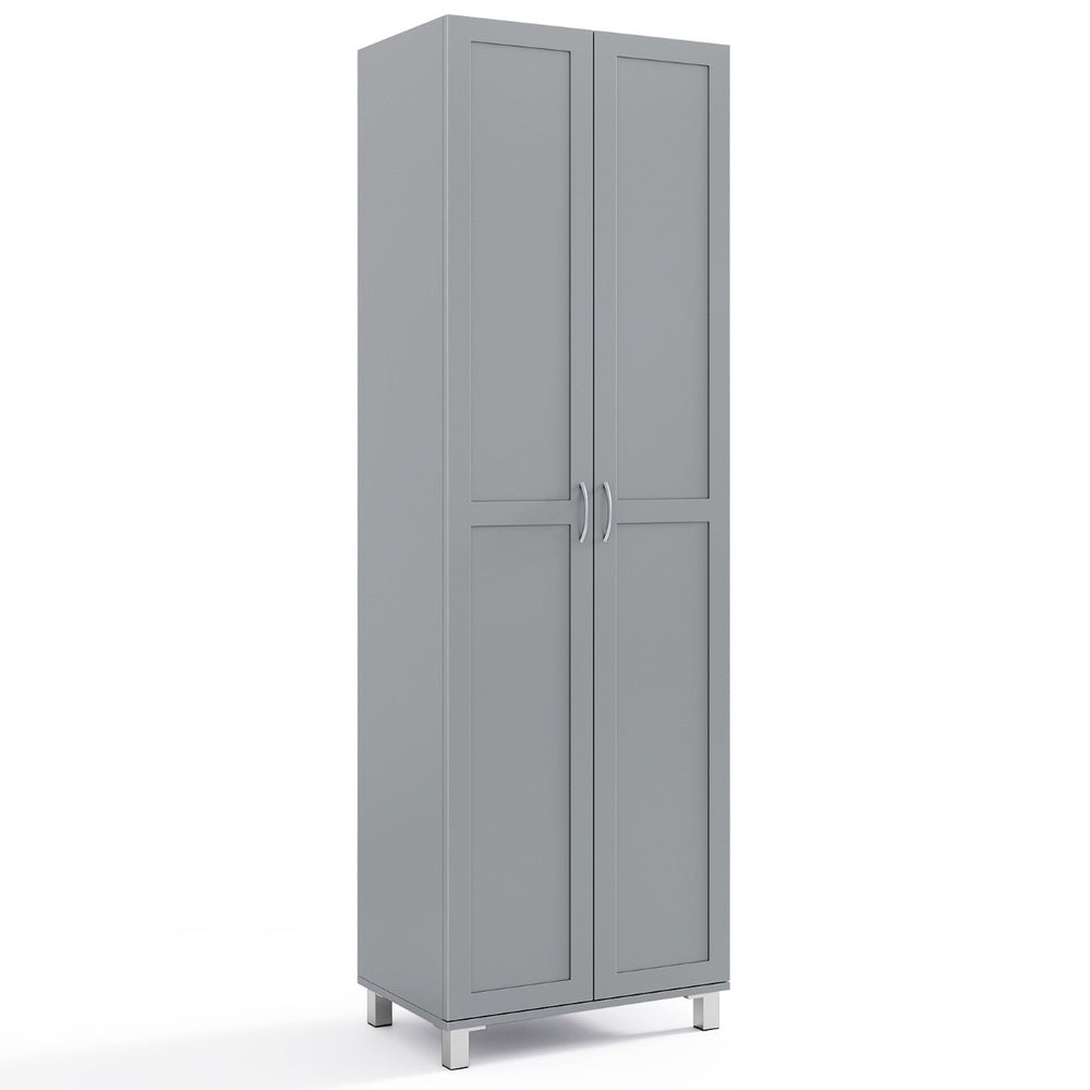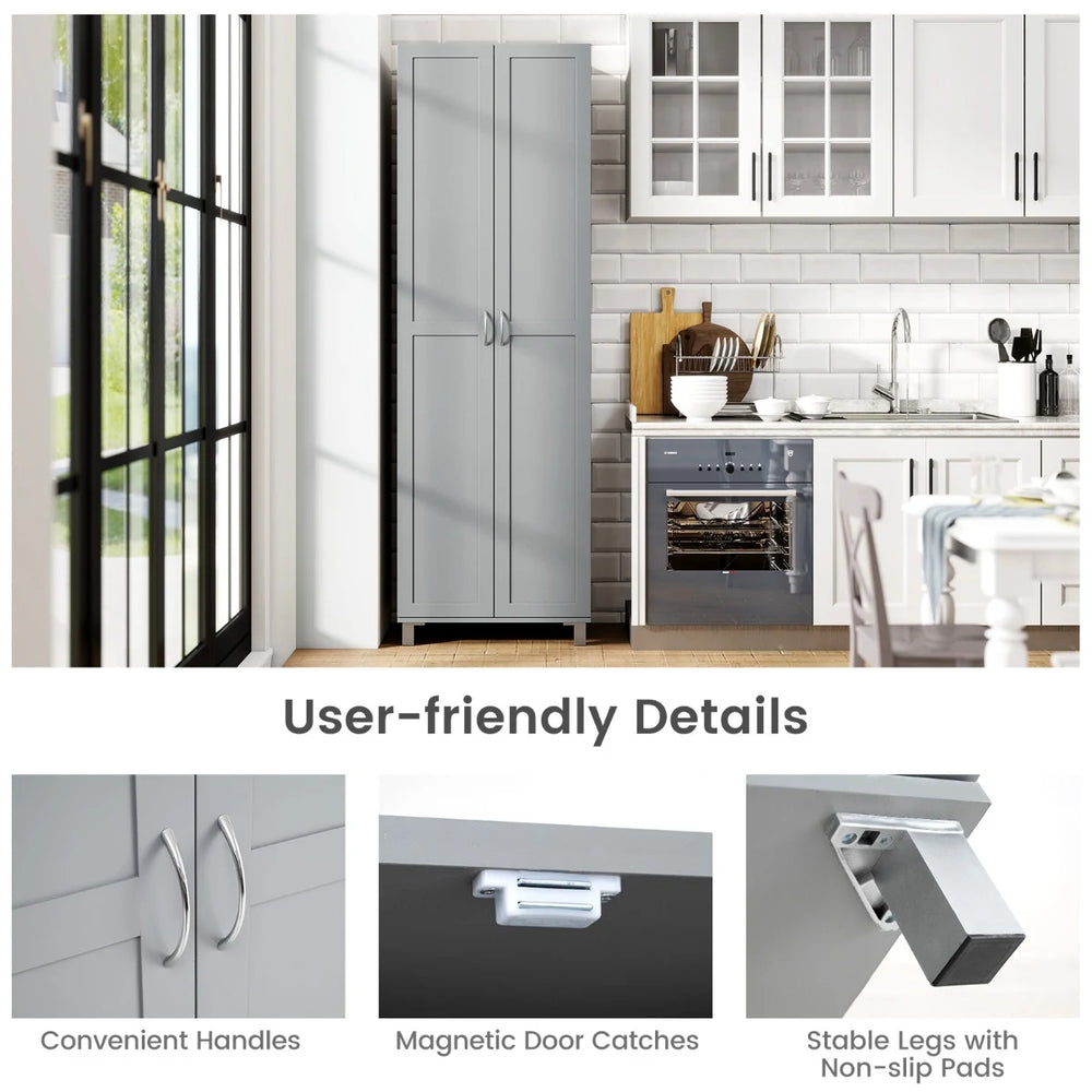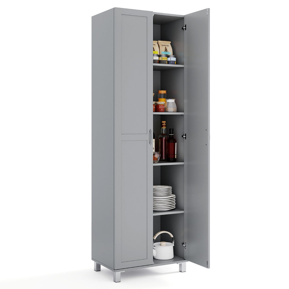 Double Door Tall Storage Cabinet with Adjustable Shelf and Anti-tilt Design-Grey