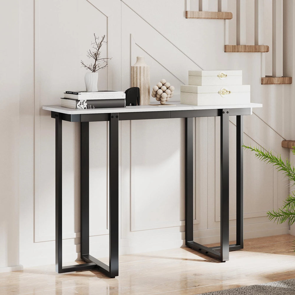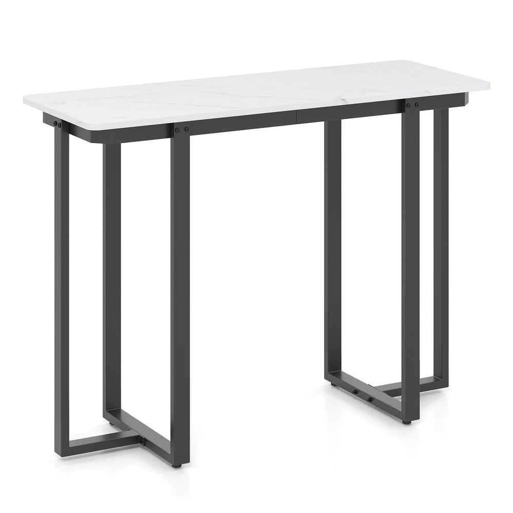 Modern Faux Marble Entryway Console Table with Geometric Metal Frame-Black