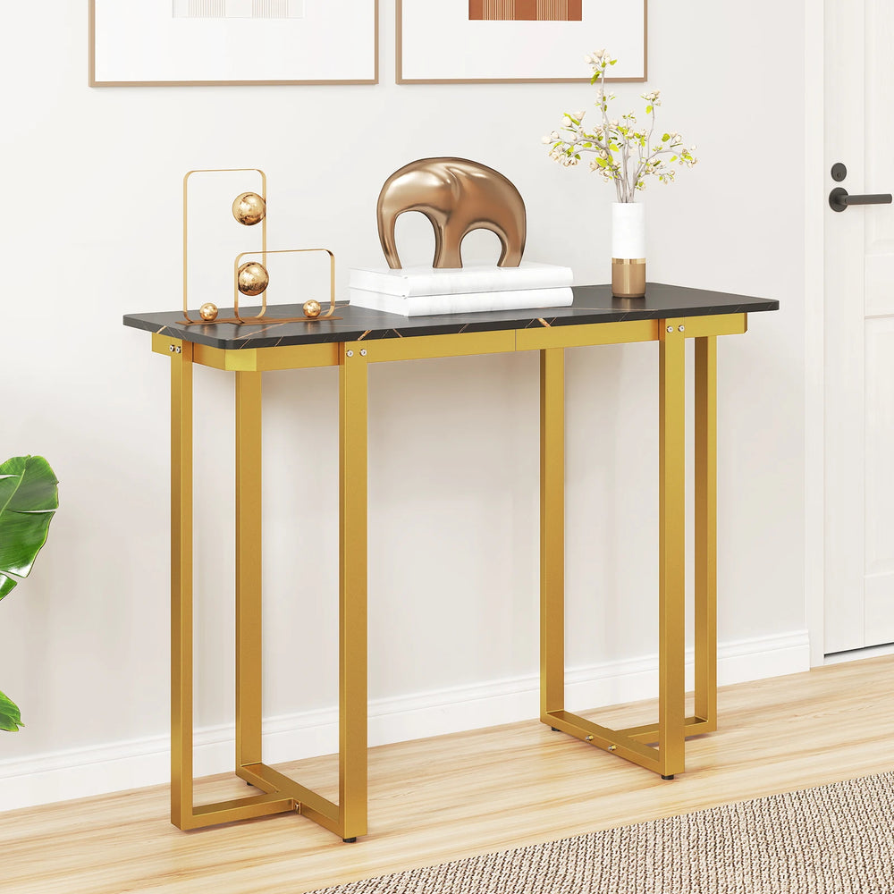 Colour: White & Black/White & Gold/Black&Gold Material: Engineered Wood, Metal Overall Dimensions: 107 x 40 x 80 cm(L x W x H) Net Weight: 11.5 kg Weight Capacity of Tabletop: 90 kg Package Includes: 1 x Console Table 1 x Instruction Manual Box QTY: 1(May vary by batch)