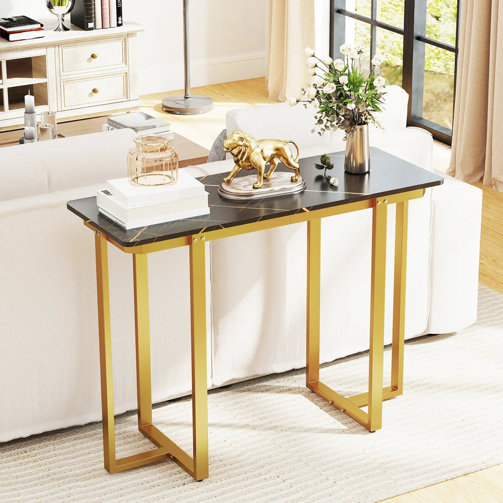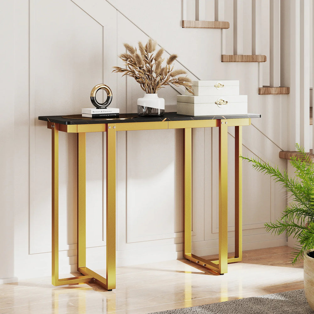 Modern Faux Marble Entryway Console Table with Geometric Metal Frame-Grey