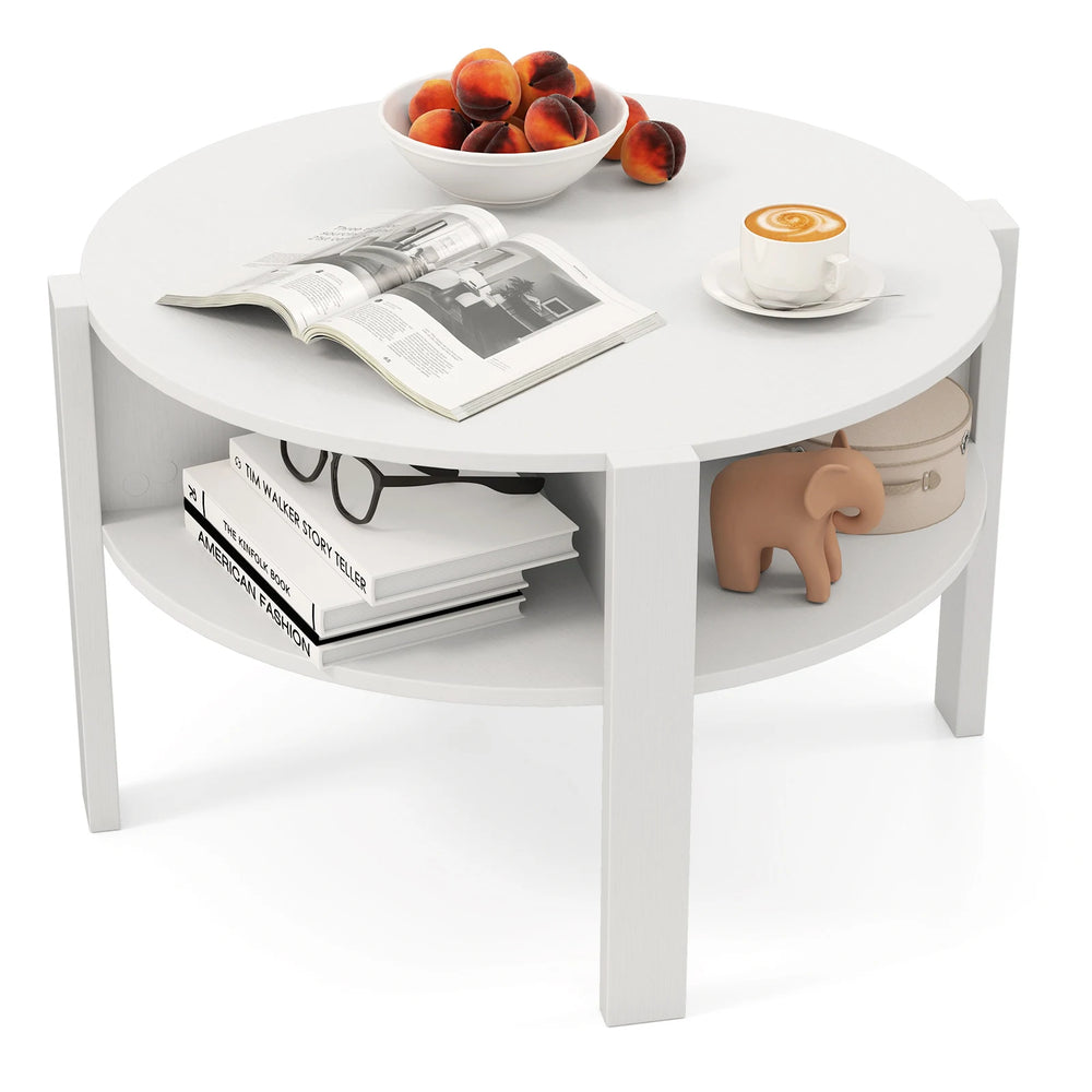 2-Tier Round Coffee Table with 4 Shelves-White is backordered and will ship as soon as it is back in stock.