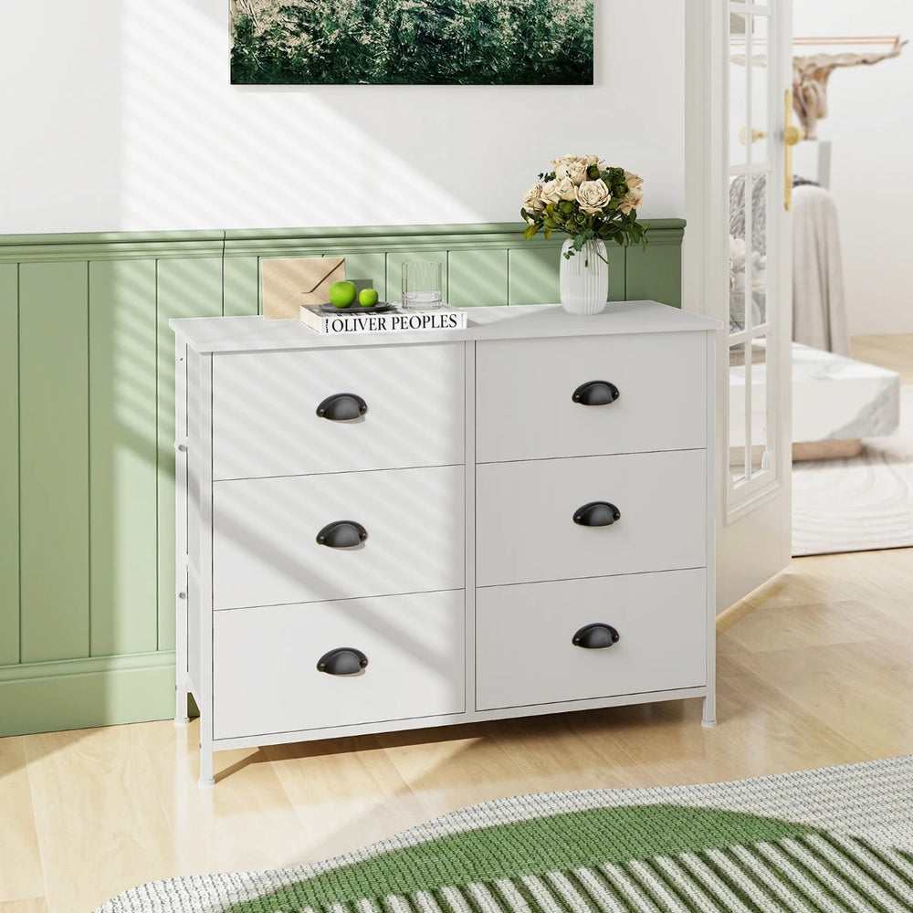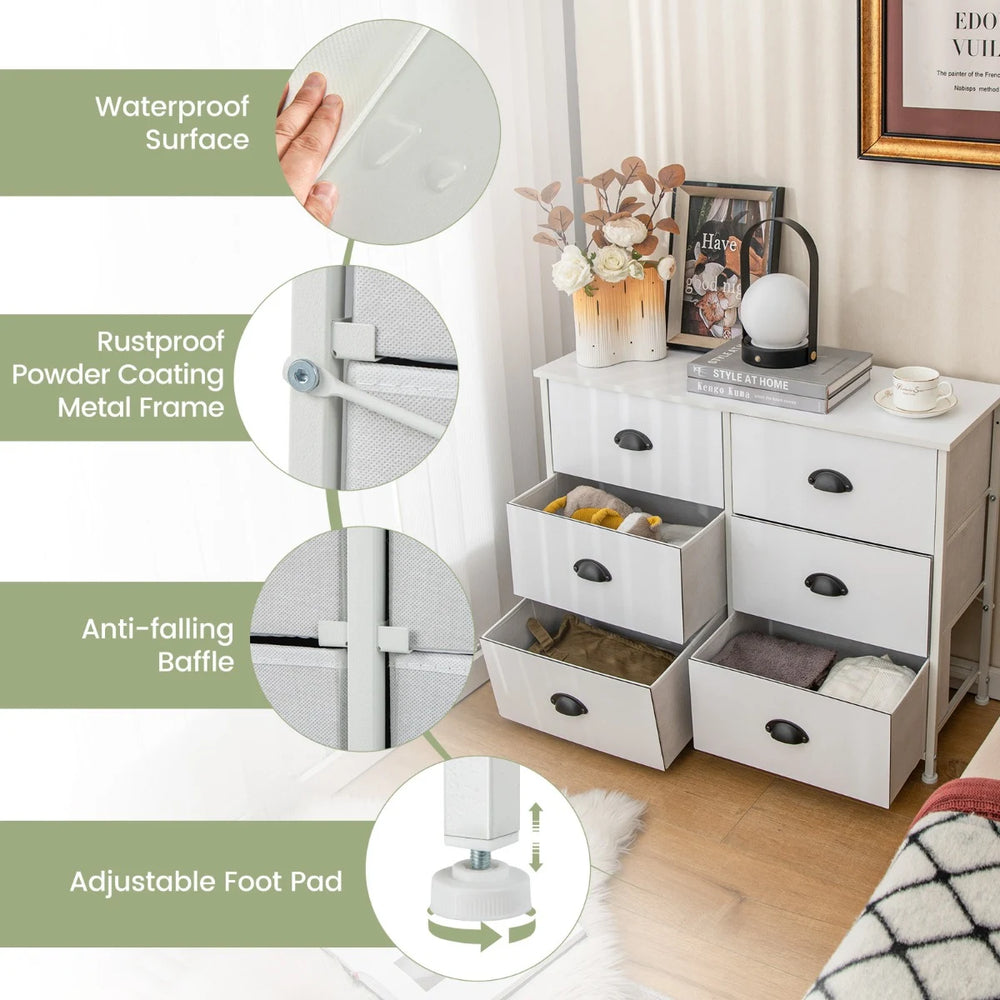 6 Fabric Drawers Storage Chest with Wooden Top-White