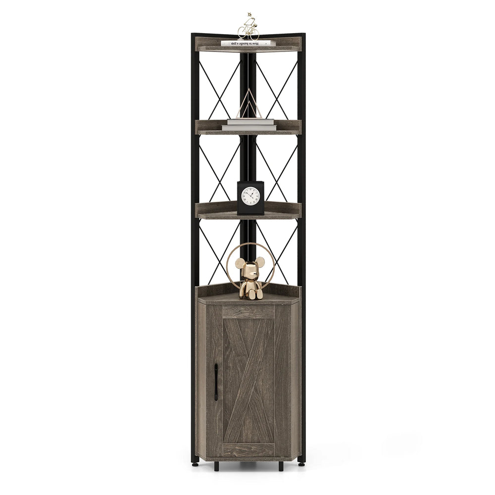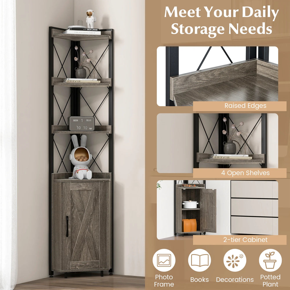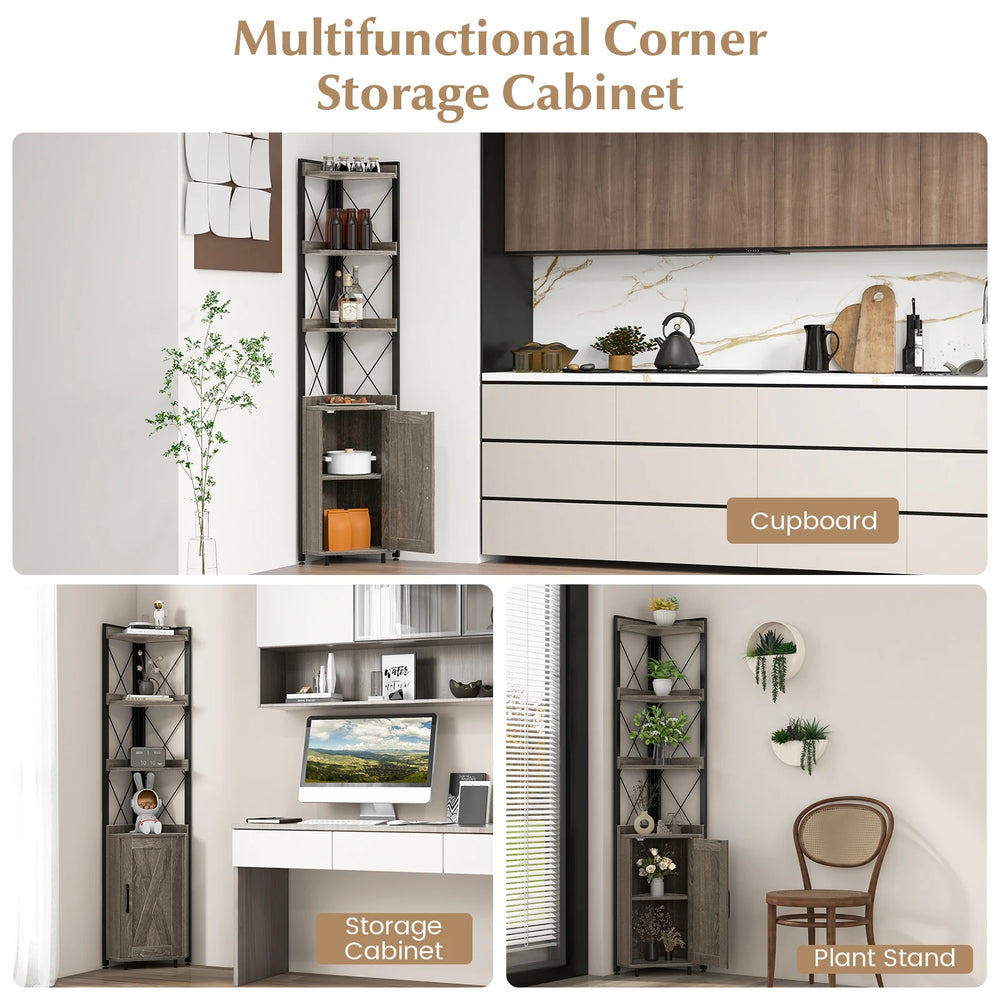 Tall Corner Storage Cabinet with 3-Tier Shelf and Enclosed Cabinet-Gray