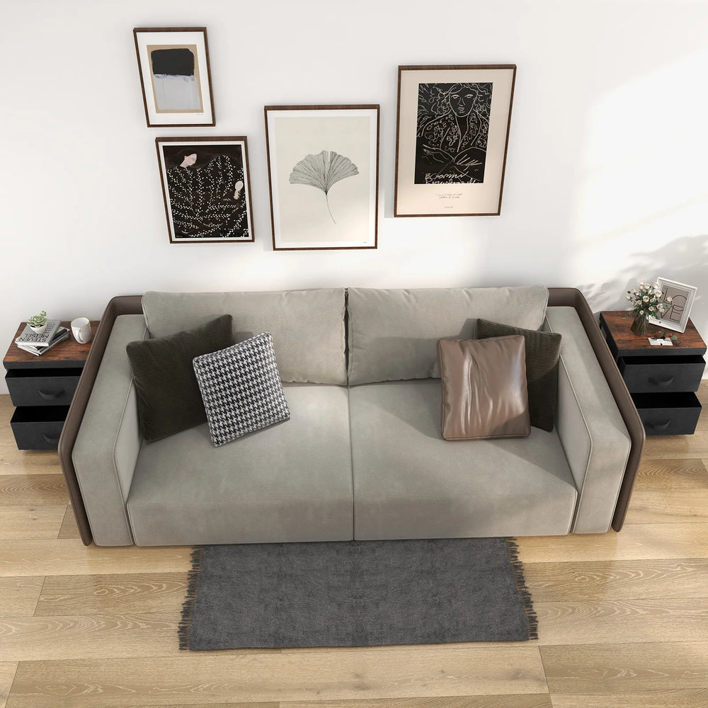 2-Drawer Nightstand with Removable Fabric Bins and Pull Handles-Black
