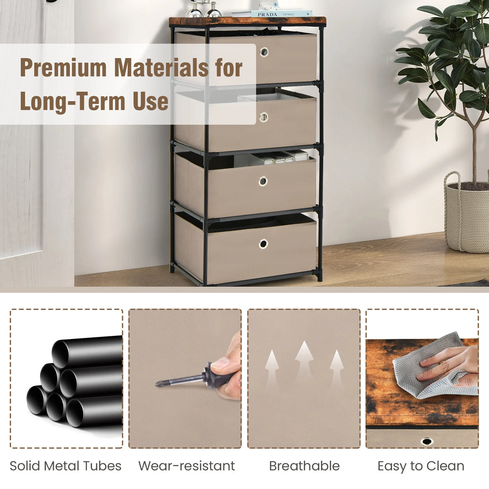 Bedside Table 4 Drawers Storage Cabinet Fabric Chest of Drawers for Bedroom 42 x 33.5 x 84.5 cm Brown