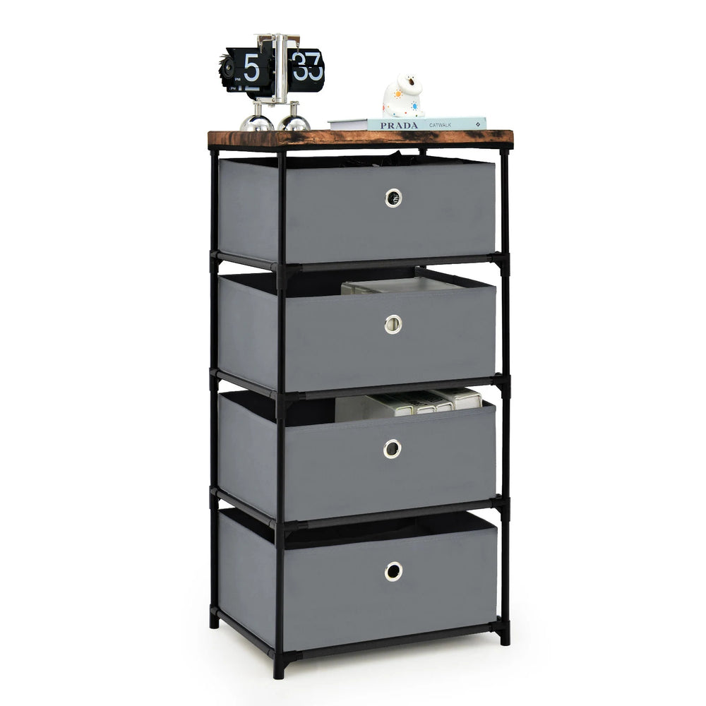 This compact 4-tier fabric dresser offers neat, accessible storage for bedrooms, studies or small spaces. Four large pull-out drawers keep clothes, cosmetics and everyday items organised, while a wide top surface provides space for a lamp, alarm clock or decorative items.