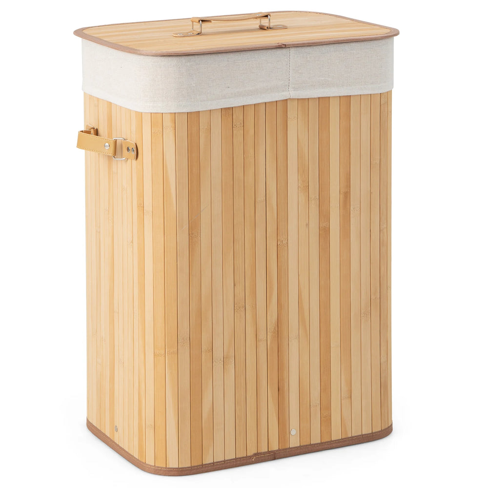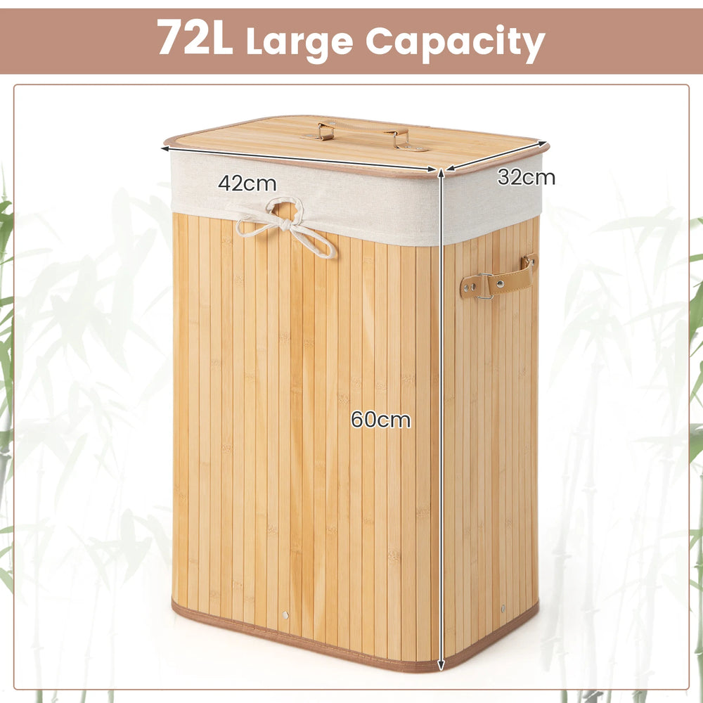 Rectangle Bamboo Hamper Laundry Basket Washing Cloth Bin Storage Bag Lid-Natural
