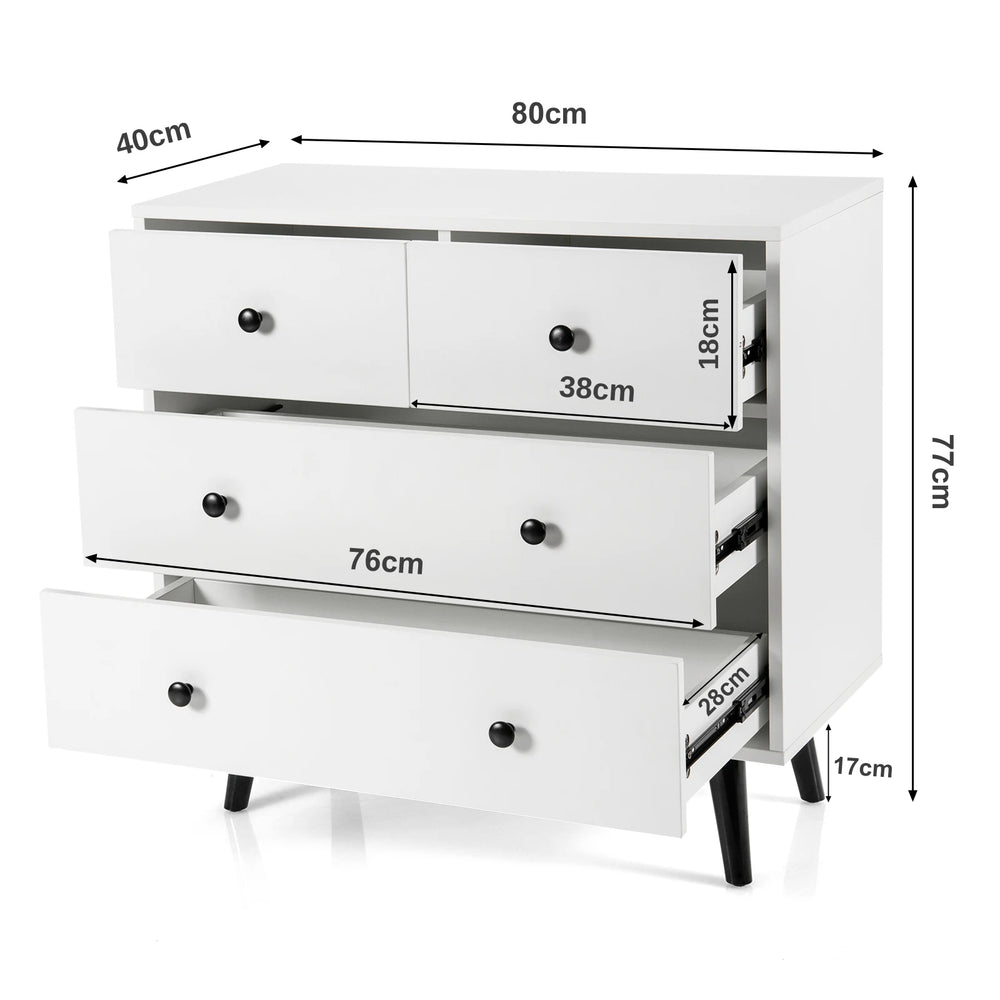 4-Drawer Dresser Modern Storage Chest Cabinet with Handles-White