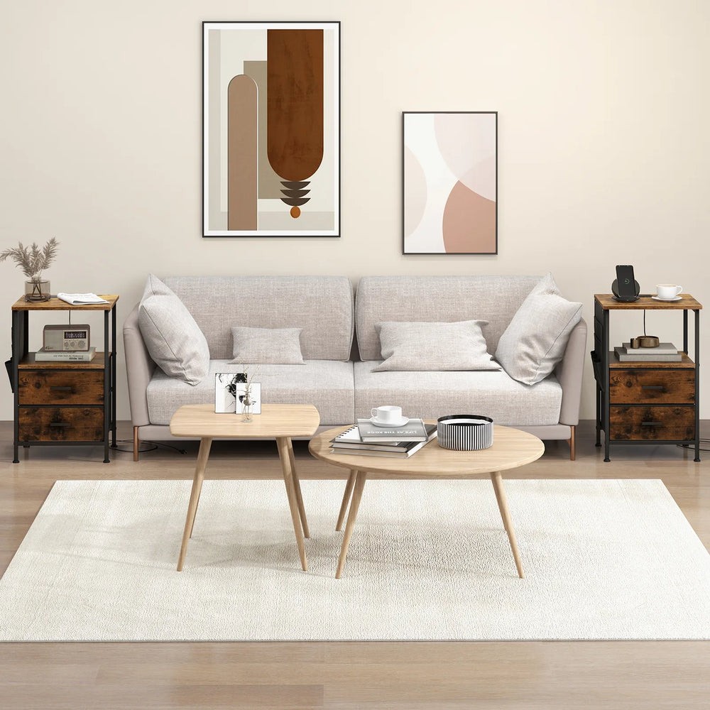 2-Piece Nightstand with Charging Station with USB Ports and Socket Outlets-Rustic Brown