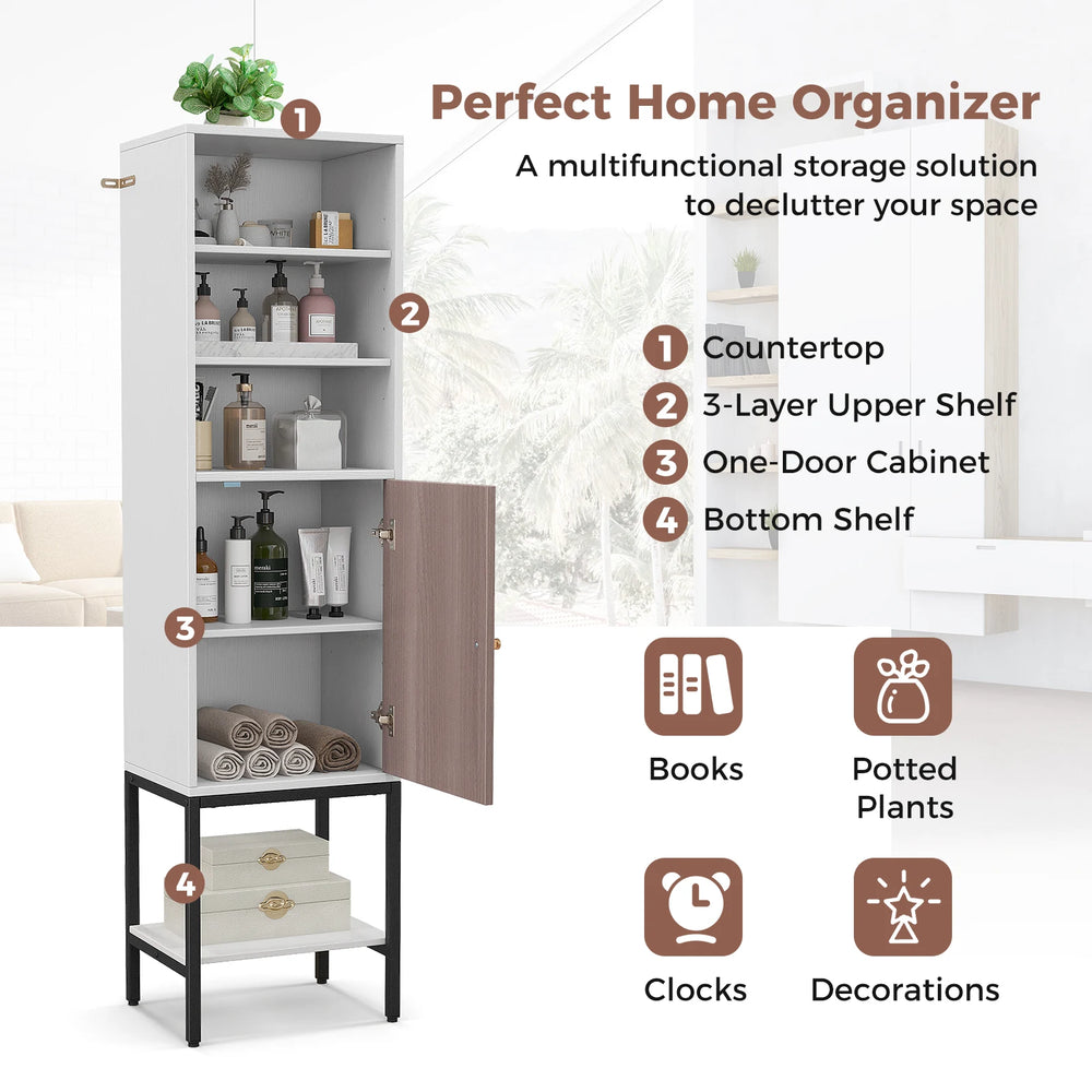 146cm Tall Storage Cabinet with Adjustable Shelfs and Bottom Storage-White