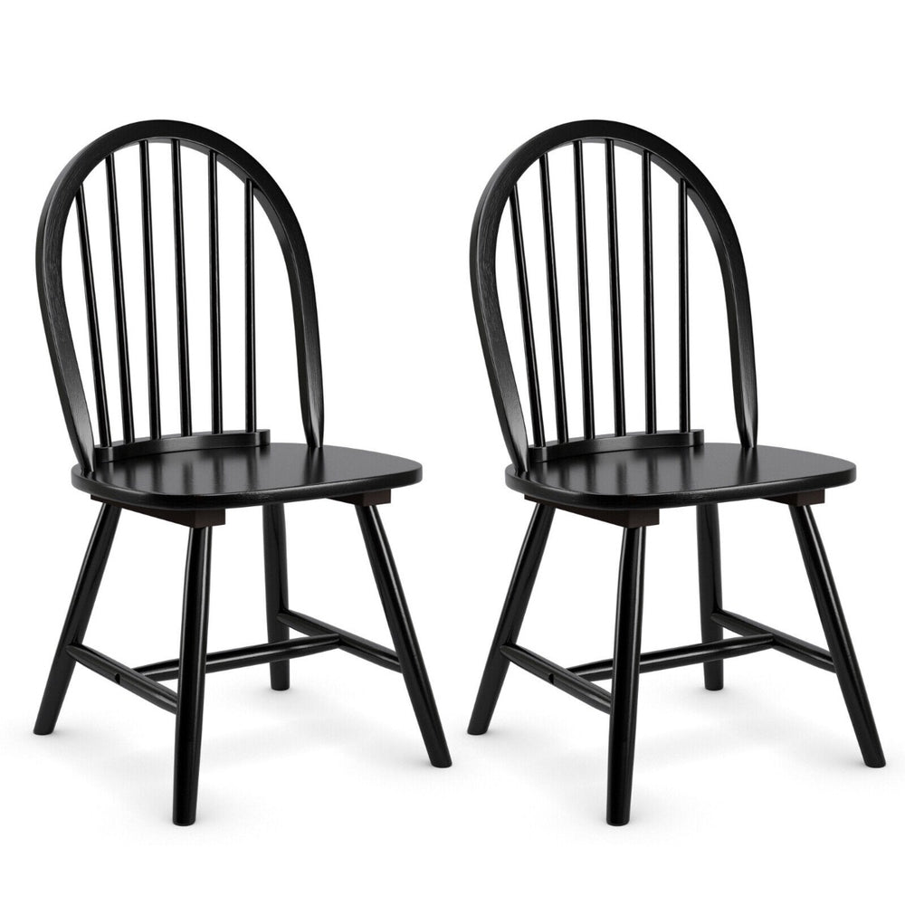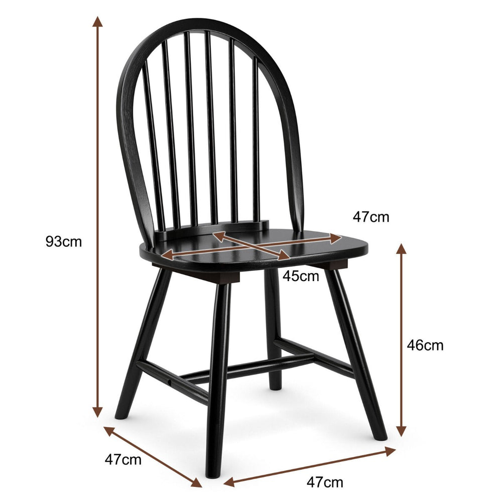 This set of two Windsor-style dining chairs blends classic design with modern comfort. Built from rubber wood, the chairs offer a solid, durable frame with a smooth finish and a timeless spindle-back silhouette that suits a range of interiors from country kitchens to contemporary dining rooms.