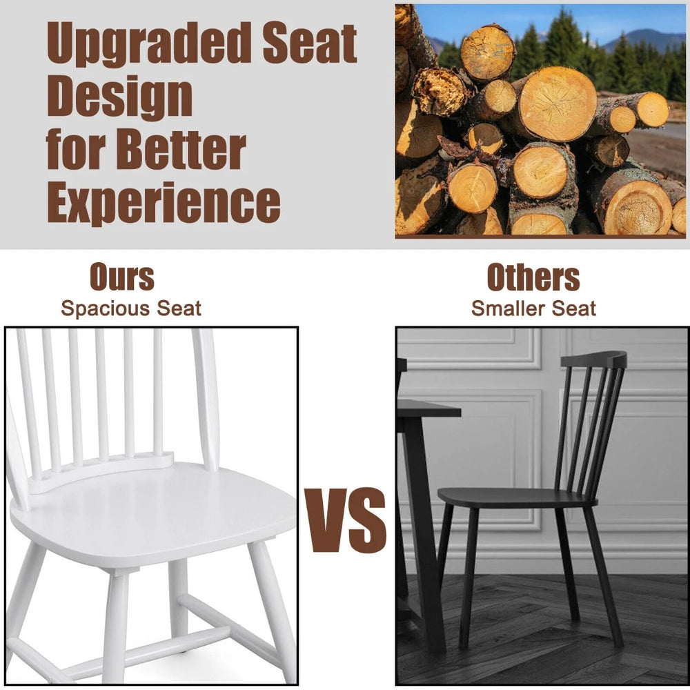 This set of two vintage Windsor dining chairs brings classic style and everyday practicality to your dining space. Crafted from rubber wood, the chairs combine a sturdy frame with a smooth surface that’s easy to keep clean. The high spindle back gives a timeless silhouette while improving ventilation for added comfort.