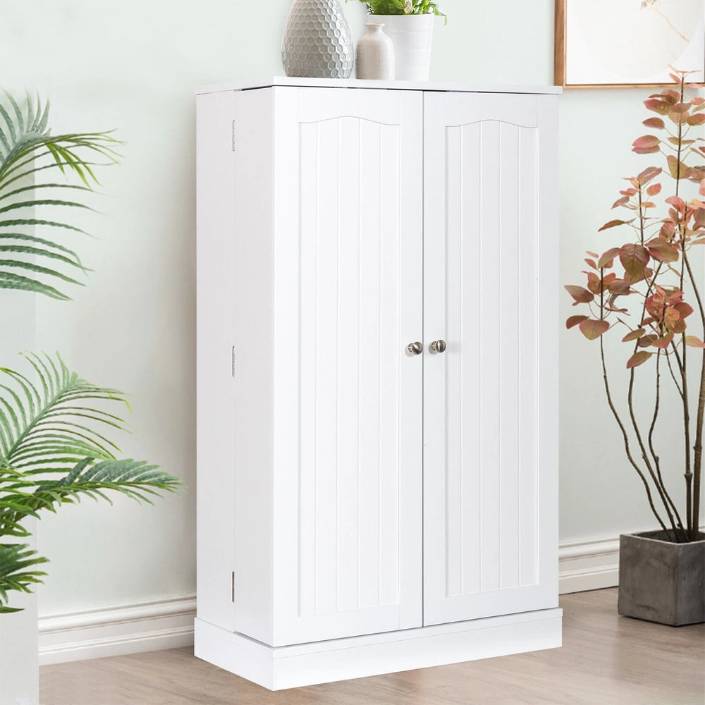 Have you ever worried about running out of storage and your home becomes messy? Now let our kitchen pantry cabinet save you. The floor cabinet is not only very stylish but also practical enough to offer you adequate hidden storage space. Different areas can be used to store different items. The cabinet top is for decoration display. Two 6-layer side shelves allow you to place a lot of lightweight things. In the middle 5-layer compartment, there is a lot of space for tableware. Besides, because the entire construction is made of sturdy MDF, the pantry cabinet features great weight capacity. Also, the non-toppling device and large base ensure good stability. If you want to place the cabinet in dining room, living room and entryway for a storage addition, it is also feasible. Bullet Point: Multi-Tier Design: Undoubtedly, multi-tier shelved design is a good way to extend storage space and sort diverse items. With two 6-tier shelves and a 5-layer compartment, the kitchen pantry offers great hidden storage space. Plus, six 3-position adjustable shelves are evenly located inside for customized arrangement. Sturdy Construction: High-quality MDF performs excellent sturdiness, so the kitchen floor cabinet can bear 157 lbs of weight. In addition, its stability is also well ensured. The MDF base at bottom increases the touching area with ground. The non-toppling device fastens itself firmly to the wall. Stylish Appearance: The polished and painted surface has a distinctive shine when illuminated by light making the kitchen cupboard look more exquisite. Meanwhile, its all-white appearance greatly increases the versatility in terms of decorating styles. Whether it's a modern or vintage style, the kitchen cupboard can fit in perfectly. Versatile Pantry Cabinet: Measuring of 59cm x 30.5cm x 103.5cm, the organization cabinet is applicable to almost any rooms. You can place the floor cabinet in living room, dining room, entryway, etc, for a functional storage option. According to the actual situation, different items, such as tableware, drinks, foods, etc, can be stored inside. Convenient Assembly: Through following the clearly-labeled and well-illustrated instruction, you can quickly finish the product assembling process. And as the surface is entirely painted, the daily cleaning becomes much more convenient. Features: Six 3-position adjustable dividers for free space arrangement Spacious cabinet top suitable for decoration display Two 6-tier side storage shelves for drinks and condiments 5-layer compartment for a variety of tableware Anti-toppling device firmly fixes the organization cabinet to the wall Better stability with reliable MDF base Magnetic catches tightly close the door Applicable to kitchen, dining room, living room, etc Minimalist all-white appearance for more fashionable furnishing style Specifications: Color: White Material: MDF Overall Dimension: 59cm x 30.5cm x 103.5cm (L x W x H) Weight Capacity of Each Side Shelf: 3 kg Weight Capacity of Each Middle Shelf: 5 kg Weight Capacity of Base: 10 kg Overall Weight Capacity: 70 kg Net Weight: 26.2 kg Package Includes: 1 x Cabinet 1 x User Guide
