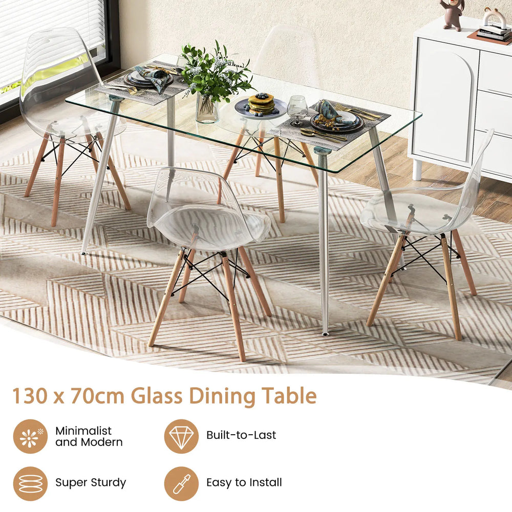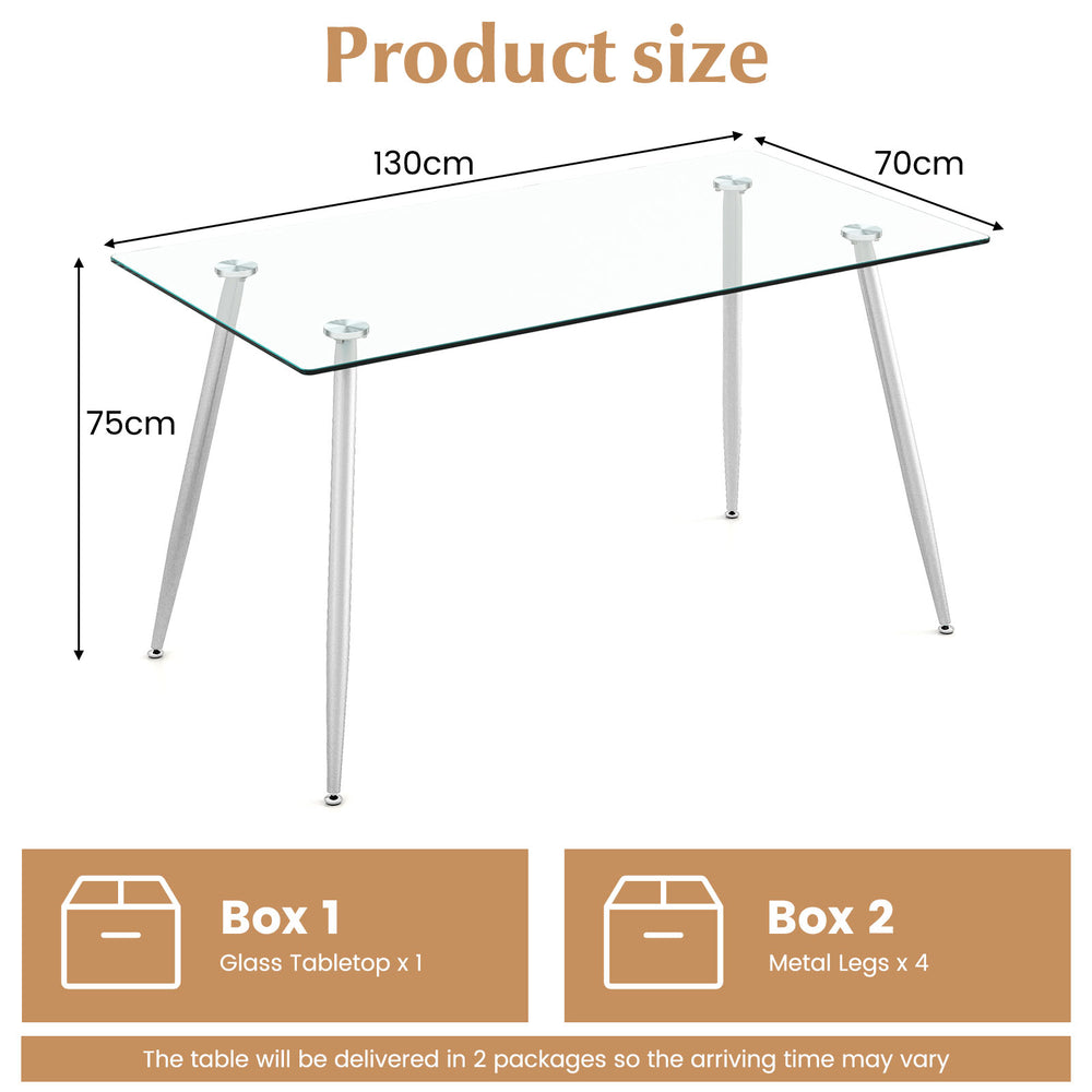 Modern Glass Rectangular Dining Table with Metal Legs-Silver