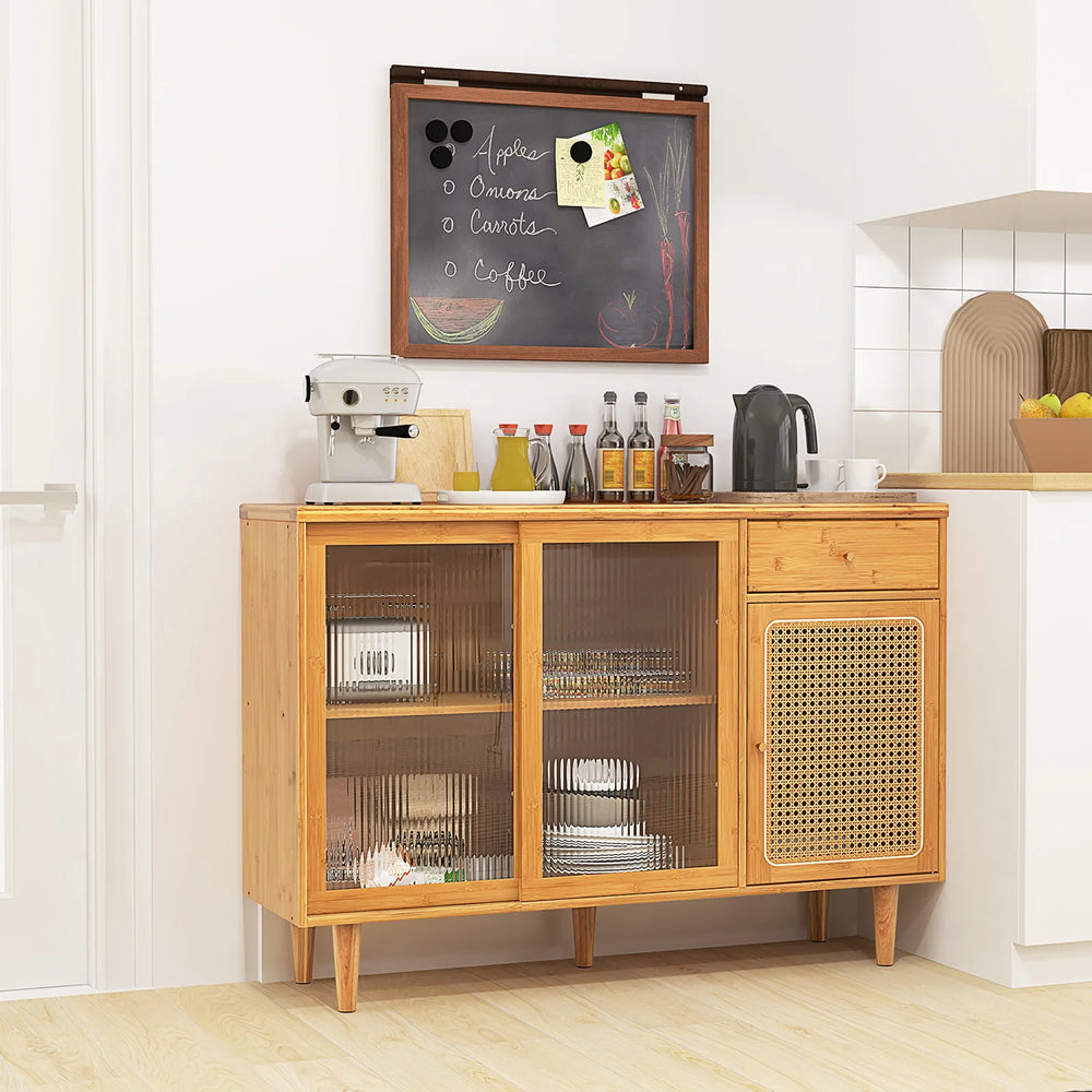 Modern Bamboo Buffet Sideboard Cabinet with Tempered Glass Sliding Doors-Natural