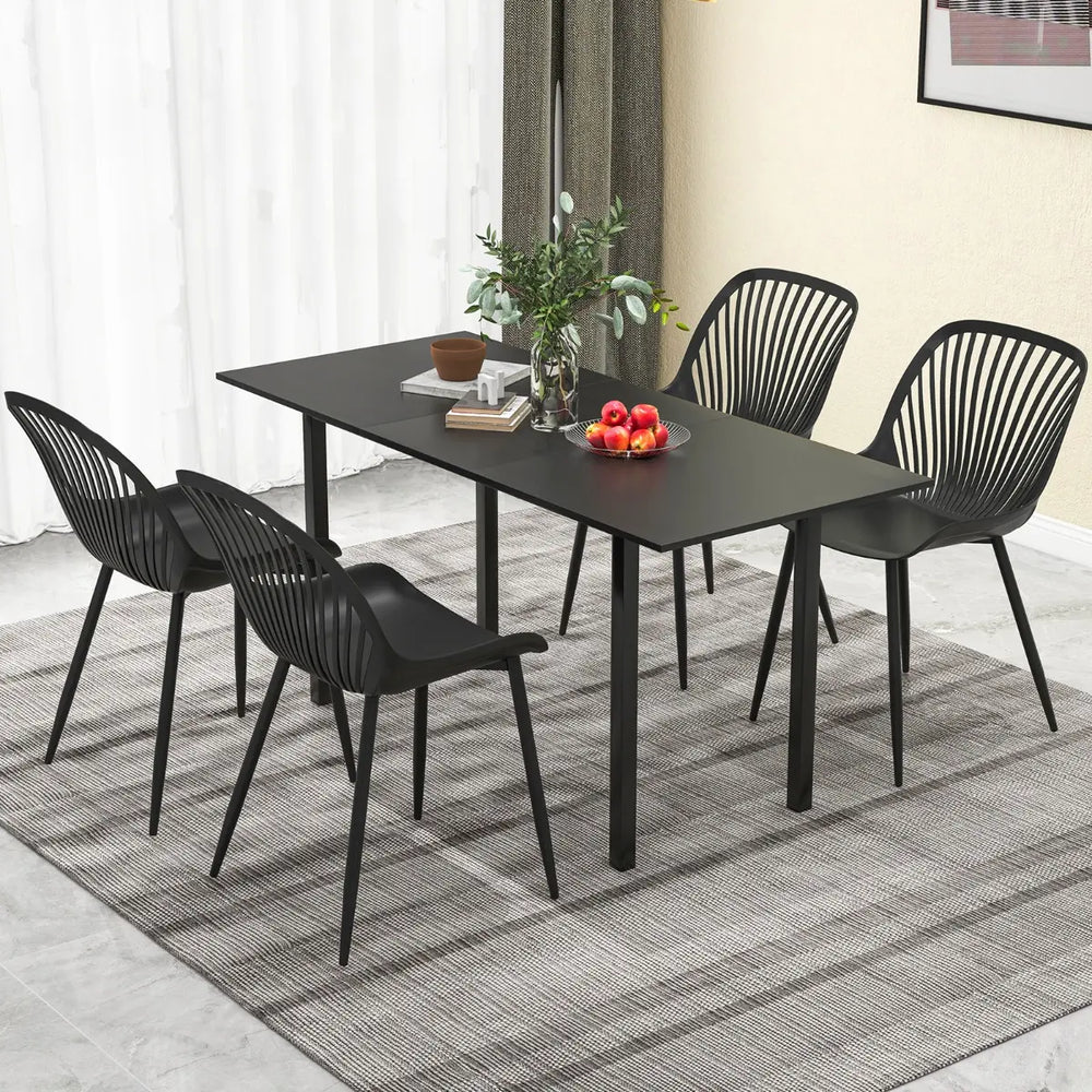Plastic Dining Chair Set of 4 with Metal Legs and Cutout Backrest-Black