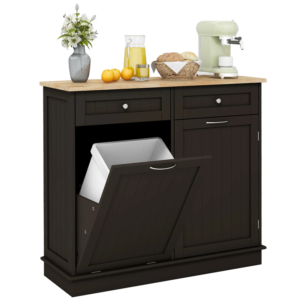 Kitchen Tilt Out Trash Cabinet with 11 Gallon Hidden Garbage Holder and Adjustable Shelf-Brown