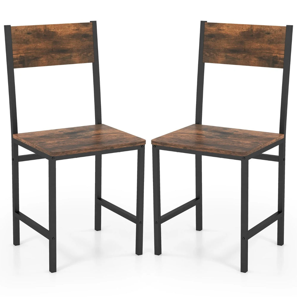 Color: Rustic Brown Material: Metal, Engineered Wood Product Dimensions: 40 x 40 x 87 cm (L x W x H) Seat Size: 40 x 36 cm (L x W) Seat Height: 47 cm Weight Capacity: 150 kg Net Weight of 2 Chairs: 9 kg Package Includes: 2 x Dining Chairs 1 x Instruction Manual
