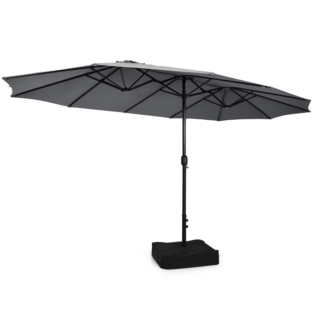 15 Feet Double-Sided Twin Patio Umbrella with Crank and Base Coffee in Outdoor Market-Gray