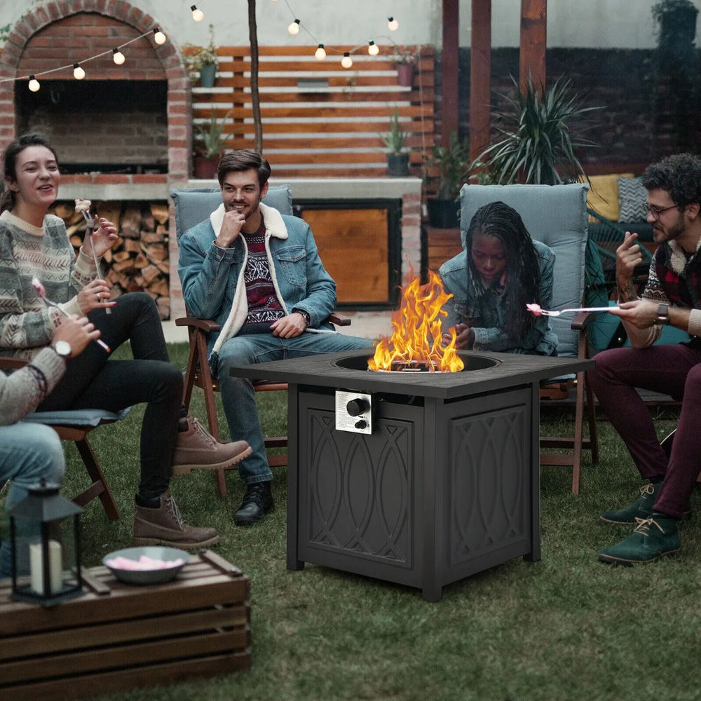 Warm up evenings outdoors with this square propane fire pit table offering 50,000 BTU (14.65 kW) of heat. The stainless steel burner produces an attractive adjustable flame that rises through included lava rocks, creating ambience as well as efficient radiant warmth for patio, poolside and garden gatherings.