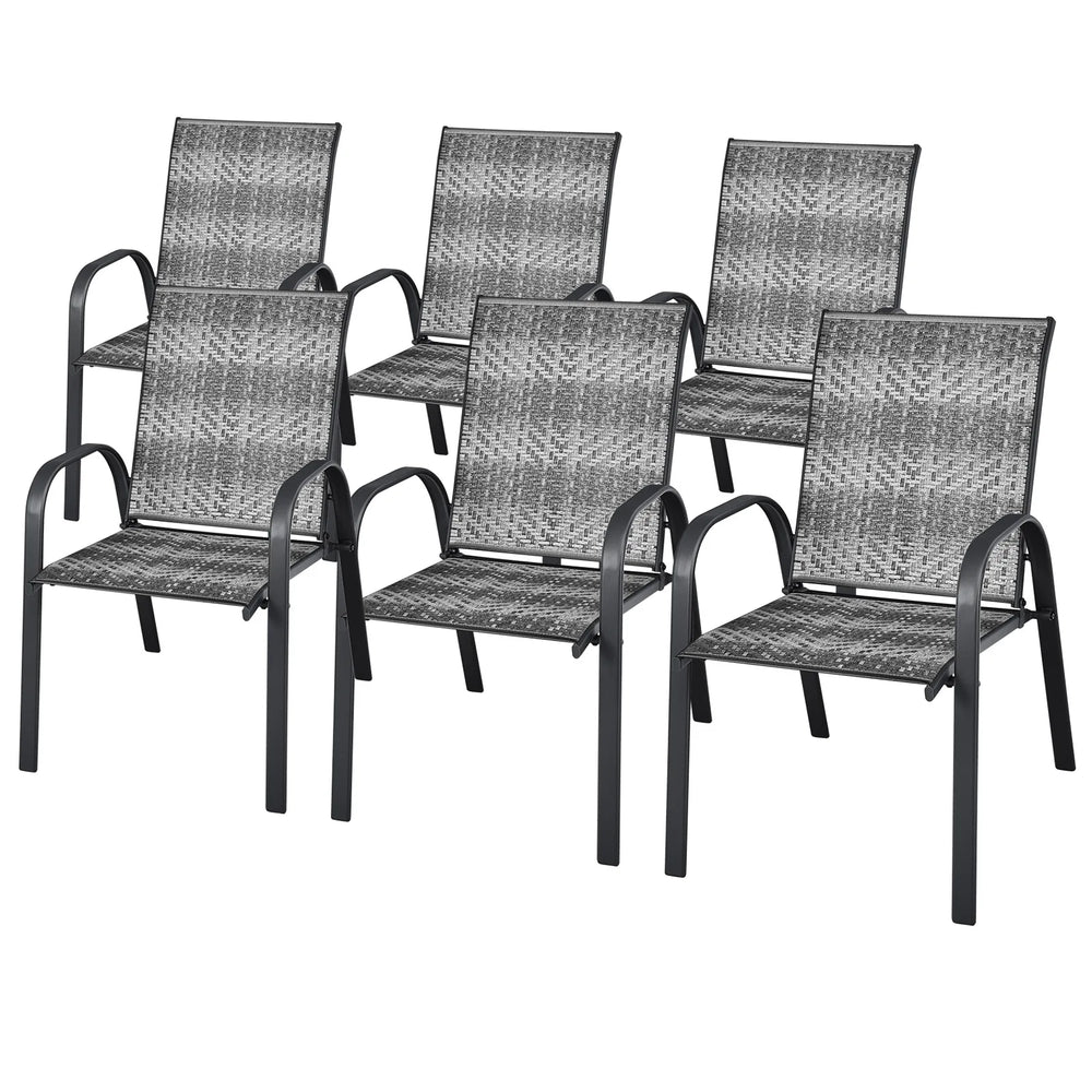 Set of 6 Outdoor PE Wicker Stackable Chairs for Garden & Yard & Deck & Lawn