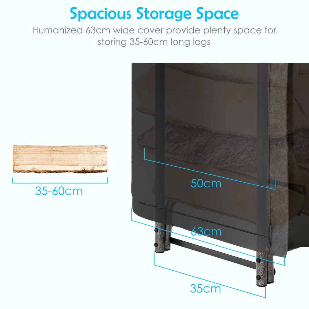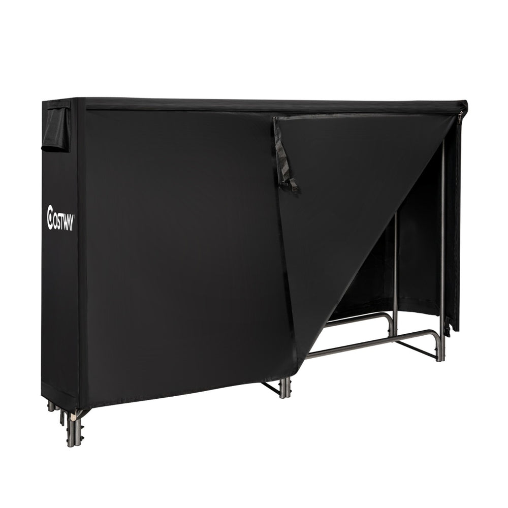 Color: Black Material: Iron + PVC Width of the PVC cover: 25" The bottom height from the ground: 6" 4FT NP10537GR Overall dimension: 4' x 1.2' x 4' (L x W x H) Net weight: 16.5 lbs Weight capacity: 220 lbs 5FT NP10538GR Overall dimension: 5' x 1.2' x 4' (L x W x H) Net weight: 18.7 lbs Weight capacity: 330 lbs 6FT NP10539GR Overall dimension: 6' x 1.2' x 4' (L x W x H) Net weight: 21 lbs Weight capacity: 440 lbs 8FT NP10540GR Overall dimension: 8' x 1.2' x 4' (L x W x H) Net weight: 24 lbs Weight capacity: 550 lbs Package includes: 1 x Firewood Rack 1 x PVC Cover 1 x Instruction